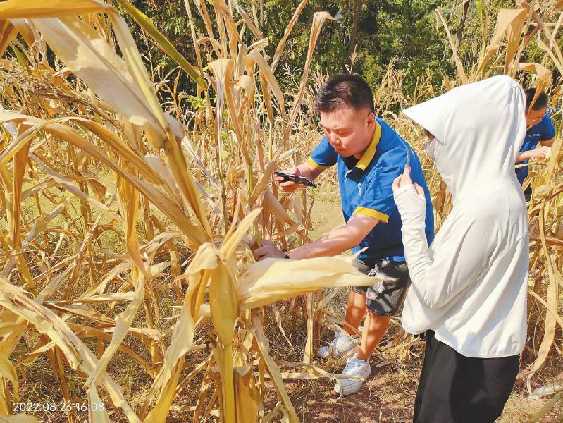 锦泰保险工作人员正在查勘农作物受旱灾影响情况。锦泰保险供图
