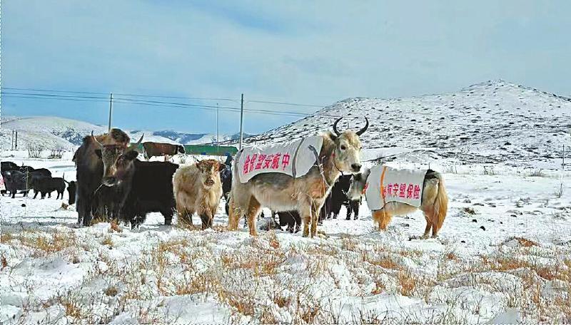 中航安盟为保险牦牛穿上“防寒背心”。 中航安盟供图