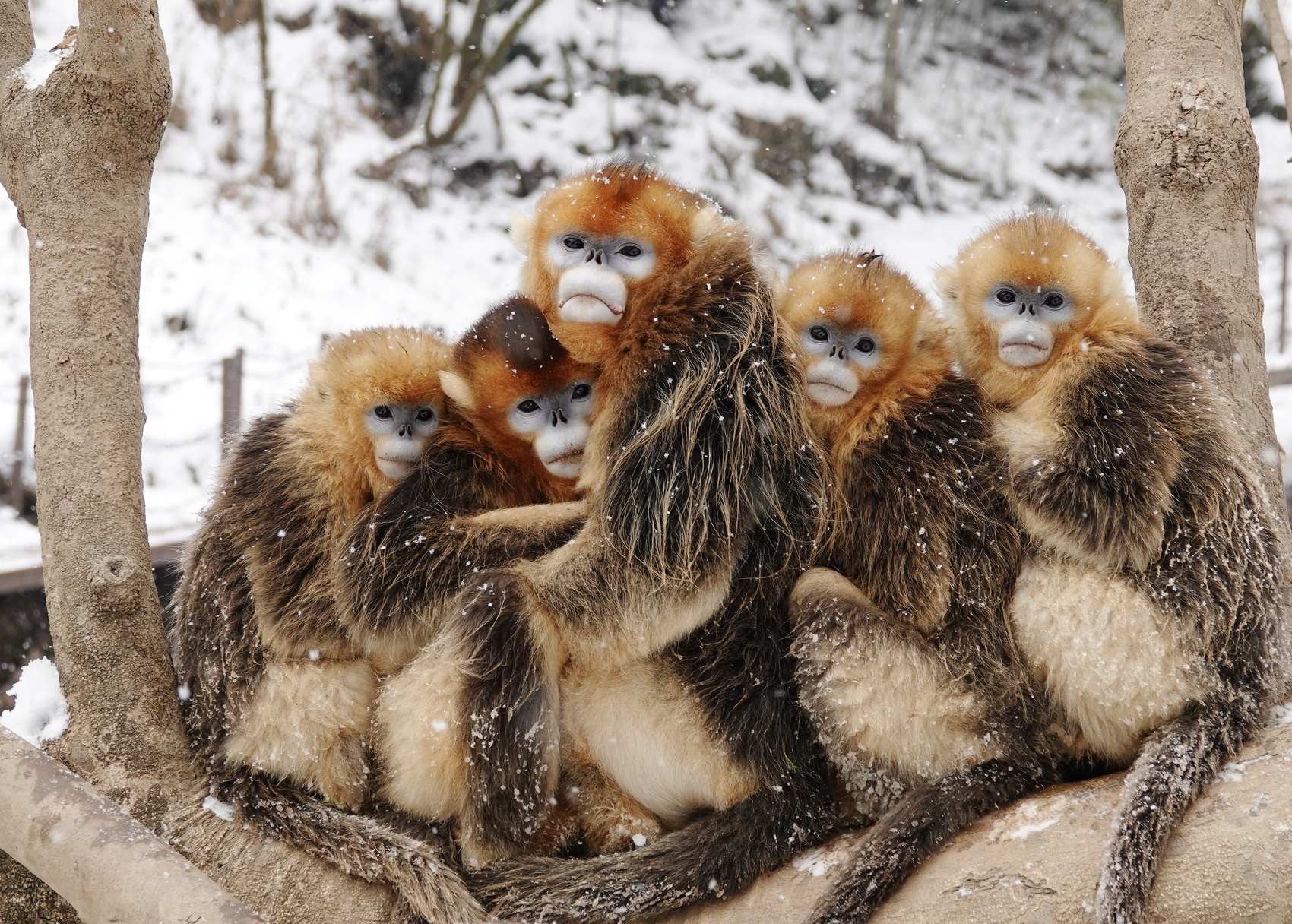 大熊猫国家公园绵阳片区雪中金丝猴。胡宇 摄