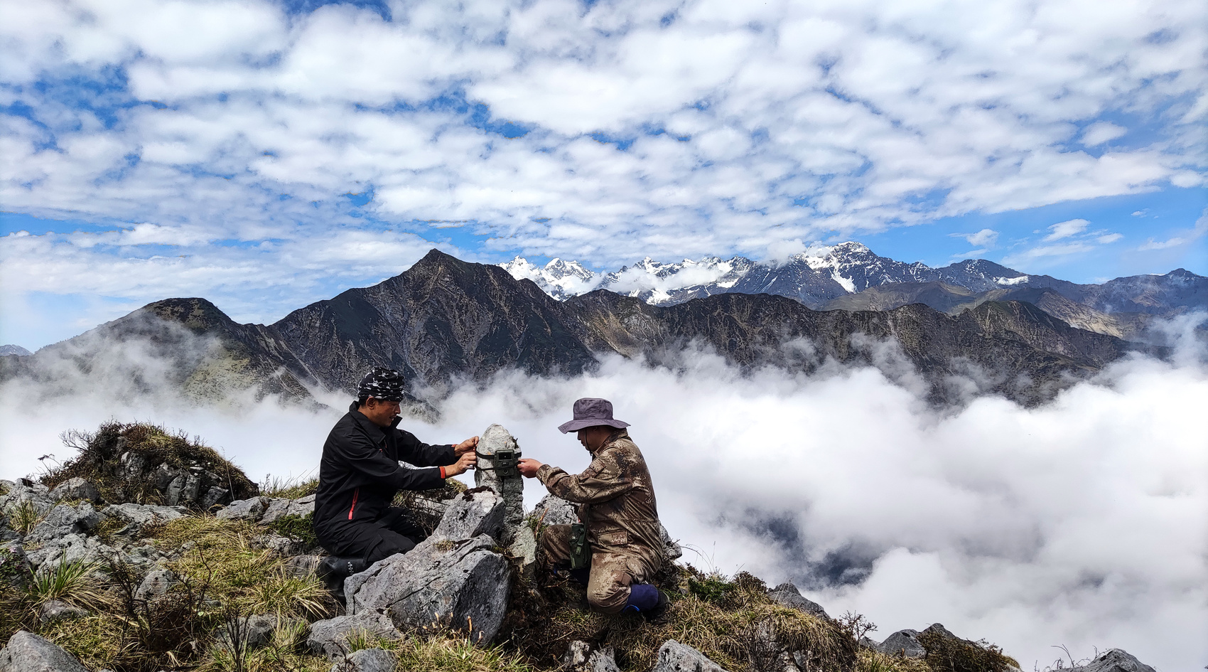 大熊猫国家公园崇州片区,巡护人员正在安放红外相机。付强 摄