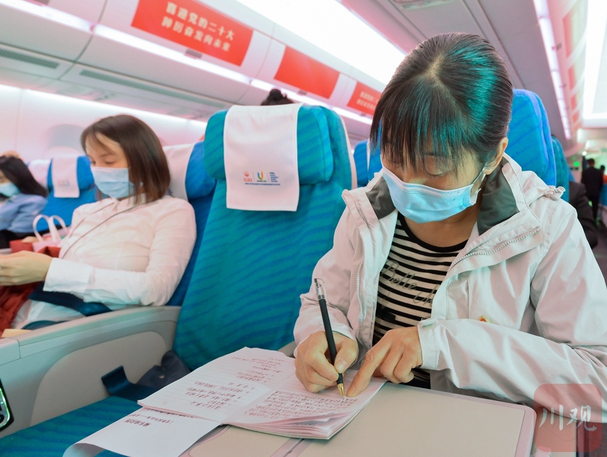 机舱内响起歌唱赞美祖国的旋律,蒲丽蓉不由激动起来。她自小挨过饿、受过苦,讲述起脱贫攻坚和乡村振兴带来的天翻地覆的变化,她的话匣子关不上了。