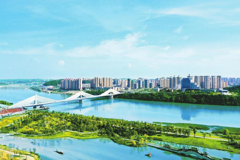 嘉陵江畔,枕水而栖的南部县满福新城禹迹岛公园里,河流湿地、草本沼泽的生态本色与青鸟宿水、飞鱼腾跃的景致相映成趣。游人穿行在清幽曲径间,尽享自然之美。