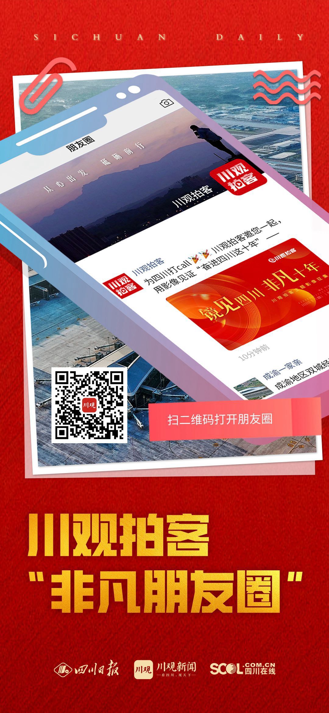 这十年,我们在巴蜀大地,见证发展、奋进、突破、成就。蜀道畅达、生态改善、创新创造、对外开放、乡村振兴……四川的“朋友圈”越来越多元,越来越精彩,让我们一起打开川观拍客这条“非凡朋友圈”,为奋进四川打call——