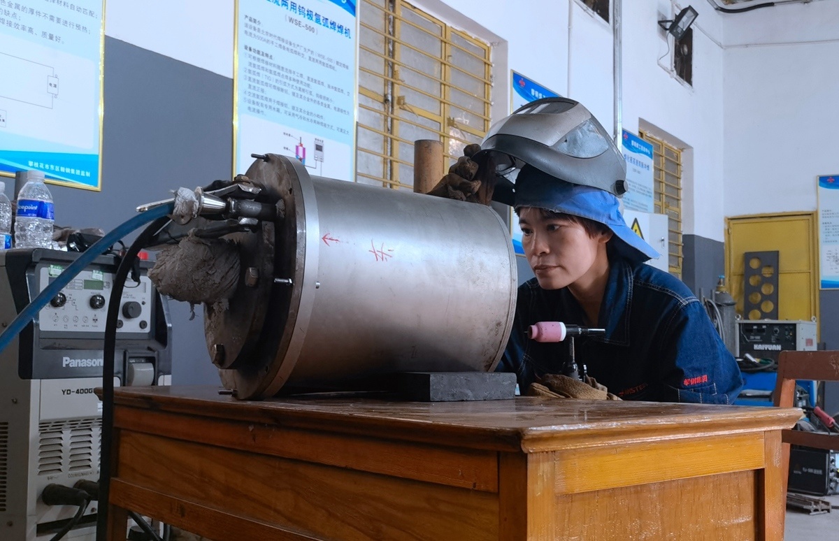 梁恩荣正在进行氩弧焊操作。受访者供图