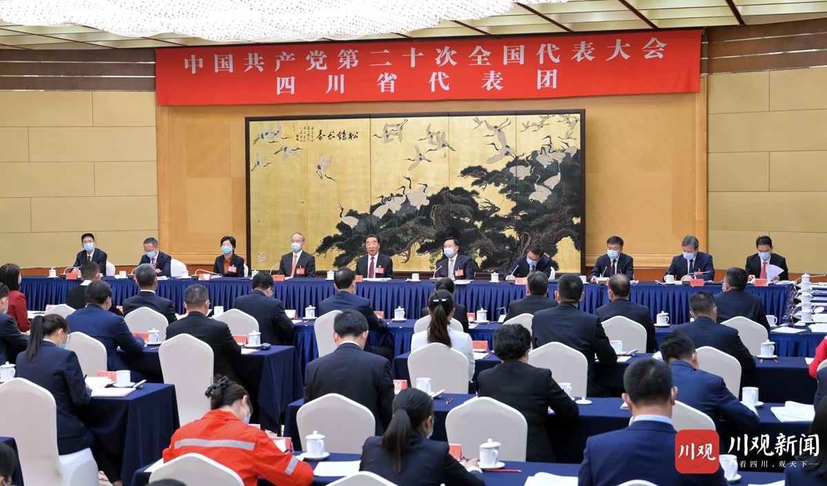 10月16日下午,党的二十大四川省代表团在驻地举行全体会议,集中学习并审议讨论习近平总书记代表十九届中央委员会所作的报告。全国政协副主席、党组副书记张庆黎来到所在的四川省代表团参加会议并发言,省委书记、代表团团长王晓晖主持会议并发言,省委副书记、省长、副团长黄强发言。