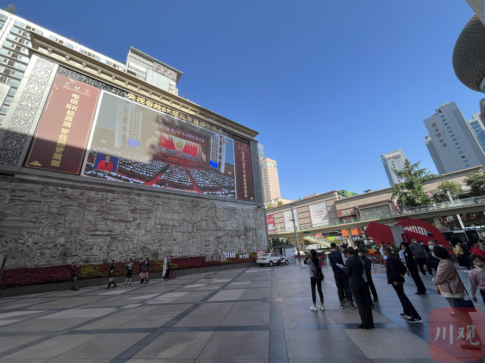 金秋盛会,举世瞩目。10月16日,成都市锦江区,阳光洒满春熙路。行人游客翘首以盼,纷纷在春熙路北口的大屏幕前驻足,期待着、盼望着,共同见证这一历史性时刻——