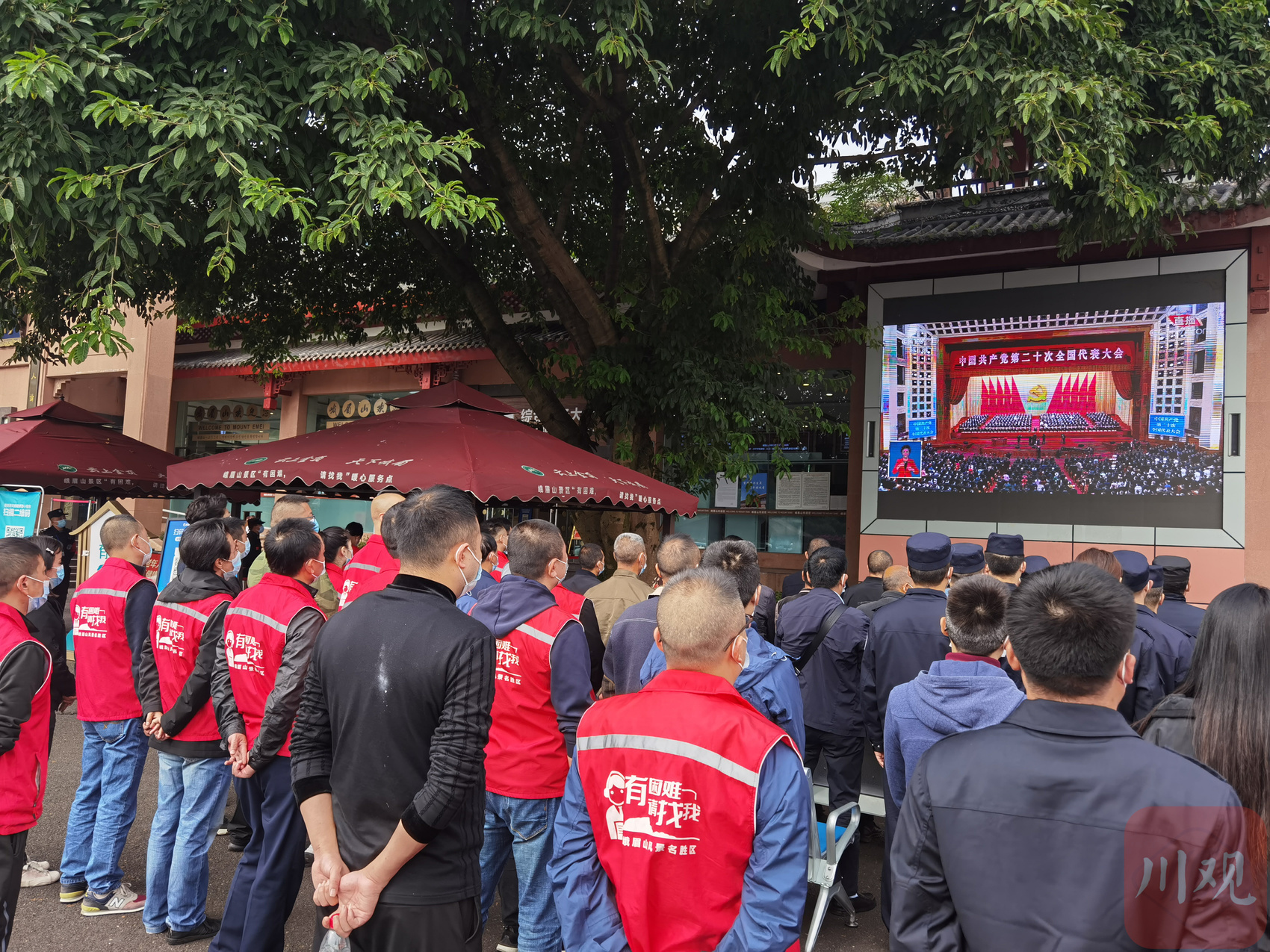 上午10时整,中国共产党第二十次全国代表大会隆重开幕,屏幕下响起热烈的掌声。“由衷地为我们党所取得的巨大成就感到自豪!”人群中,唐梅难掩激动。作为锦江区春熙路街道总府路社区的党委书记,她见证了这里数年来的发展与变化,“春熙路是成都城市形象的重要窗口。其迭代升级的背后是城市的跨越发展,是祖国的繁荣强盛。”