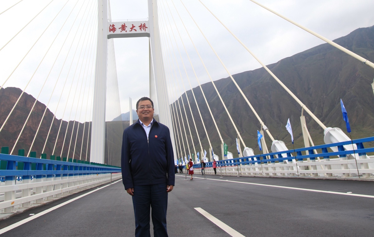 “在这些年里,青海建设出了一批科技含量十足的标志性工程,充分体现了在交通强国建设中的青海担当。让我印象深刻的是青海第一桥——海黄大桥。作为连接海东市与黄南藏族自治州的过河通道,是青海首座大跨径双塔双索面钢混叠合梁斜拉桥,主跨跨径居同类型桥梁国内第四,是当时西北地区最大跨径桥梁。”