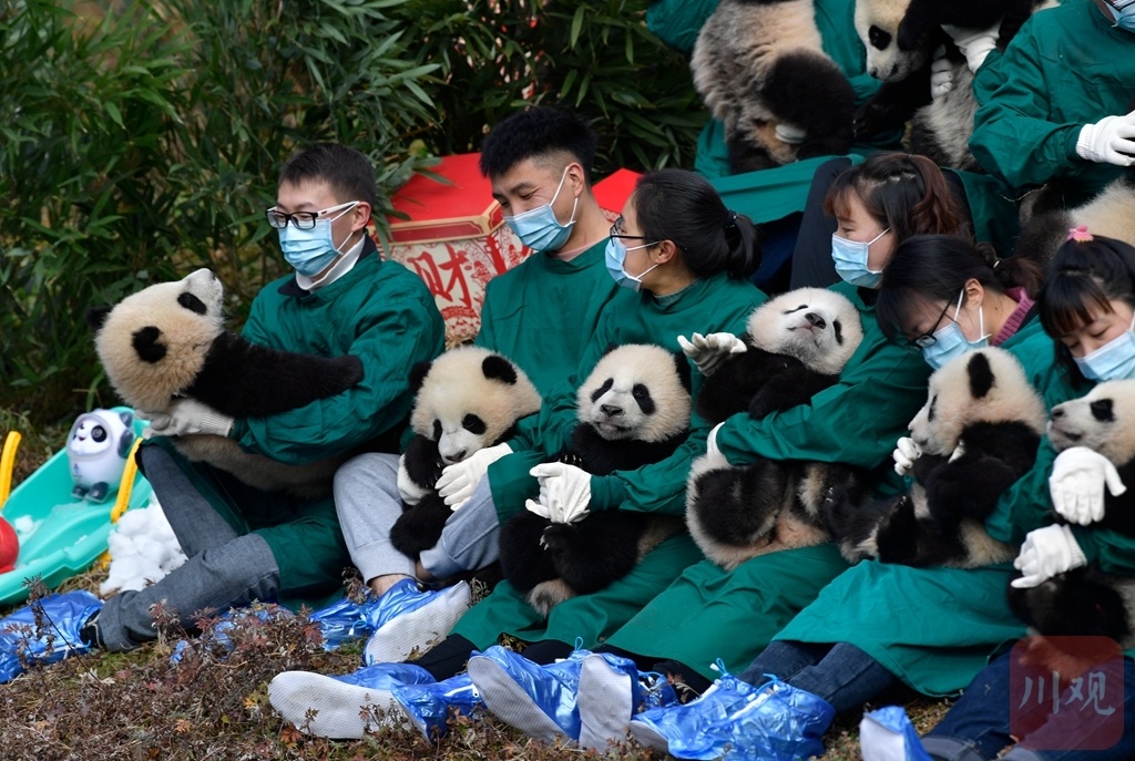 2022年1月24日,中国大熊猫保护研究中心卧龙神树坪基地,二十只半岁左右的熊猫宝宝集体亮相,向全国人民送上最萌的新春祝福。