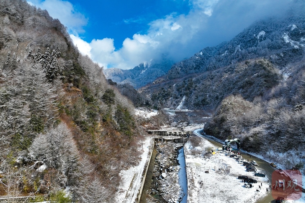 2022年2月2日,中国大熊猫保护研究中心卧龙神树坪基地周围的山上银装素裹,宛如洁白的童话世界。