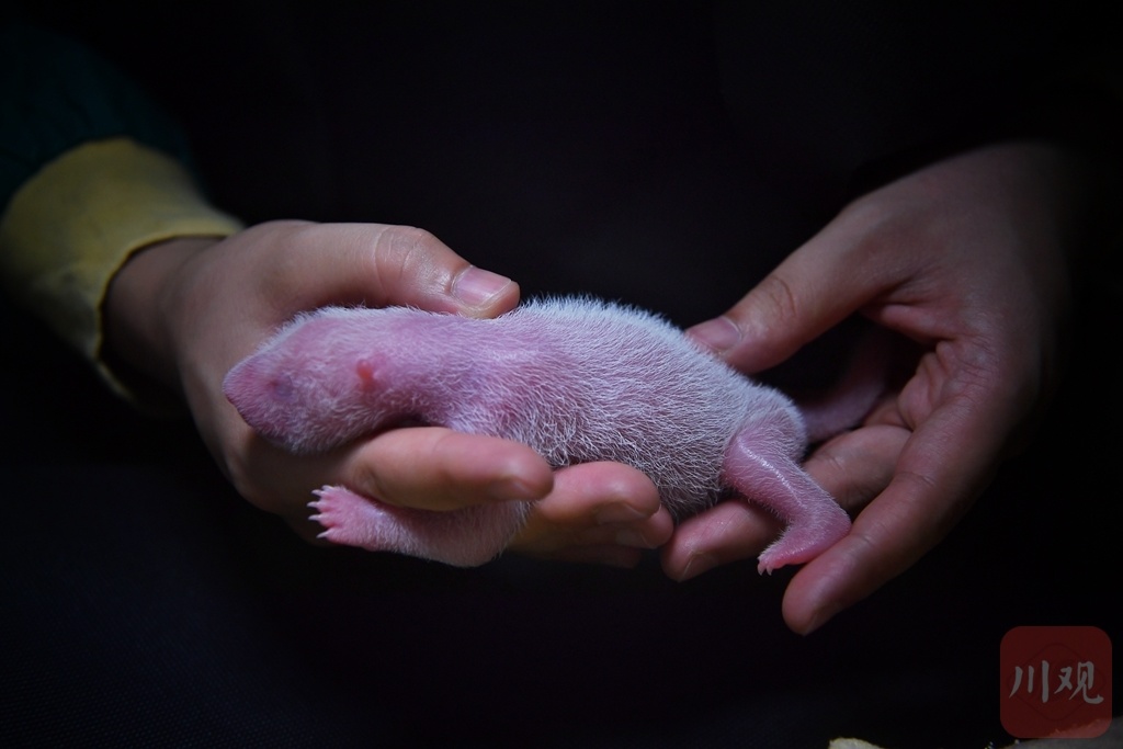 2021年7月17日,中国大熊猫保护研究中心卧龙神树坪基地四喜临门,一小时内降生四只幼仔。图为大熊猫“珍珍”的幼崽。