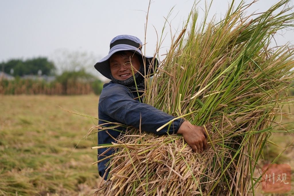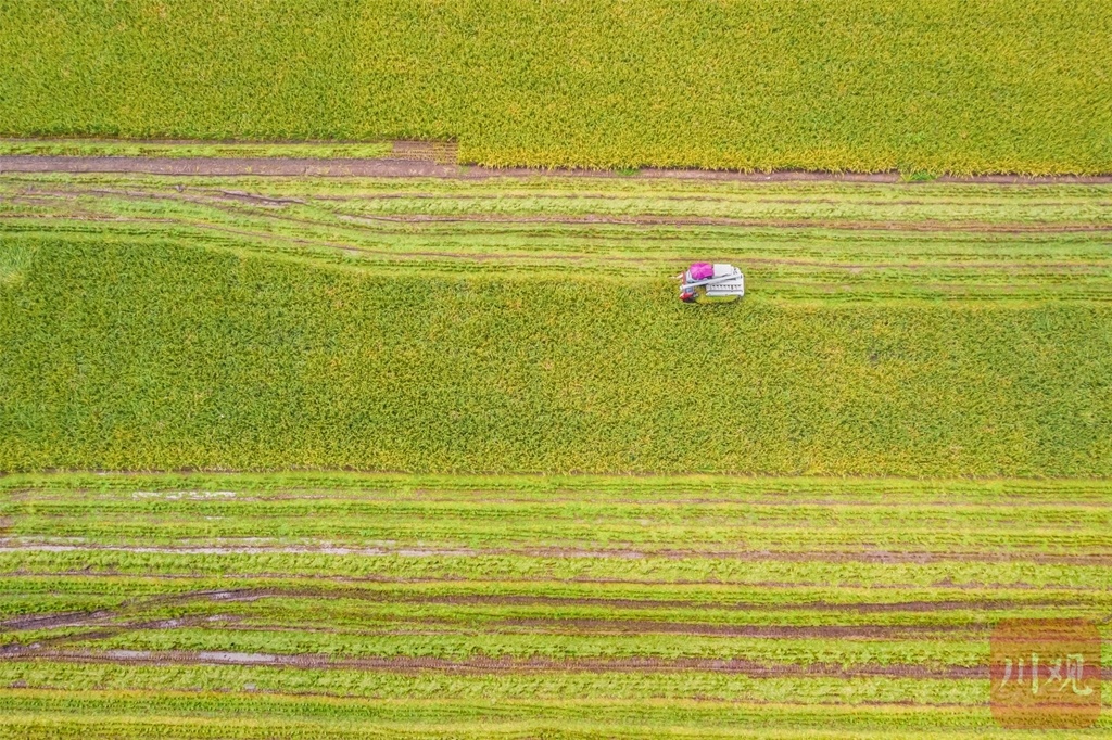 2022年08月20日,永丰村水稻开镰,“天府粮仓”添新粮。