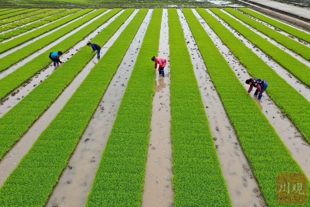 2022年4月5日,眉山市东坡区太和镇永丰村村民抢抓农时进行春耕、育秧生产。