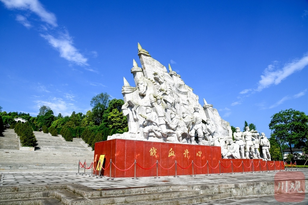 川陕革命根据地红军烈士陵园铁血丹心主题雕塑。