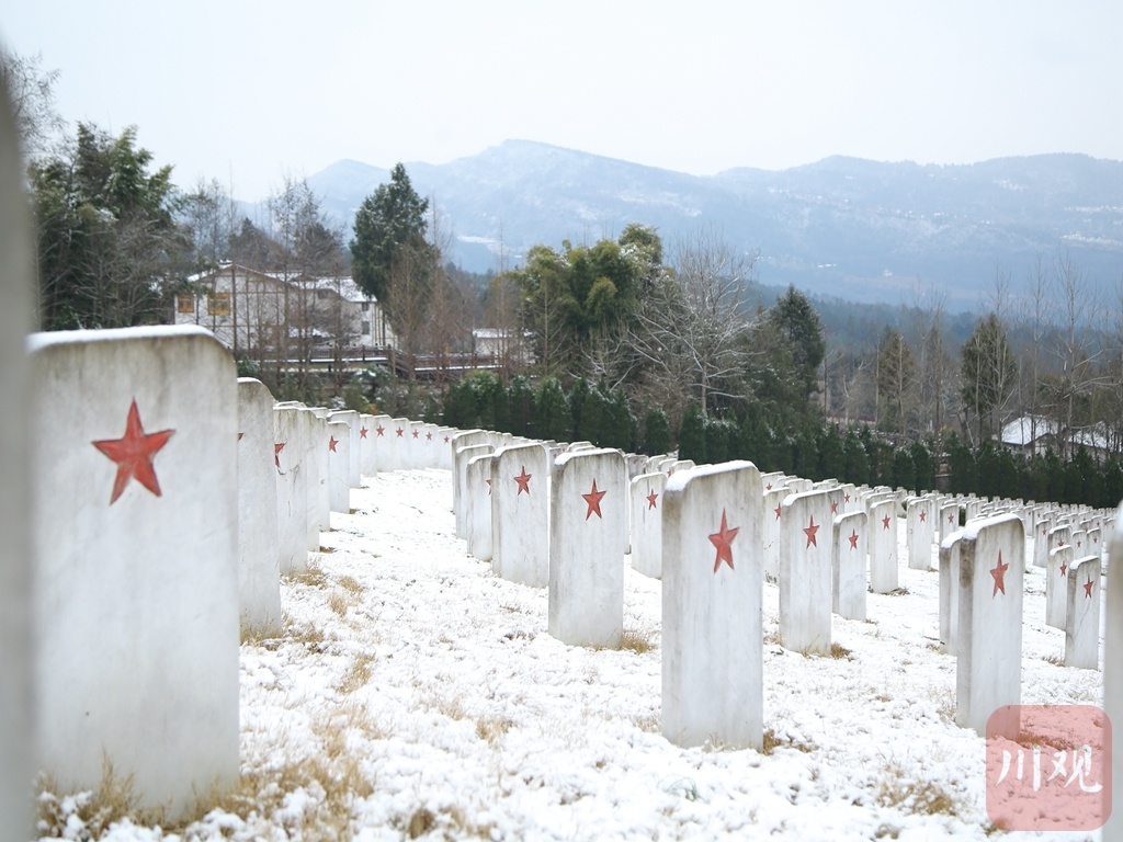 白雪皑皑的川陕革命根据地红军烈士陵园。