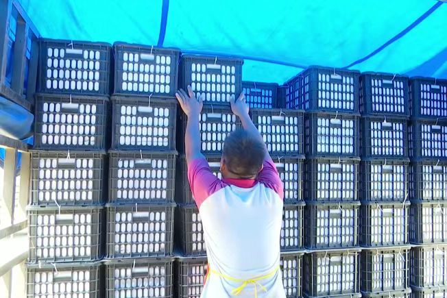 近日,攀枝花市仁和区金江镇立柯村五贵塘组的攀枝花喜果农业出境水果包装厂外,工人们将包装好的18吨凯特芒果装车。这是攀枝花首次通过自营出口芒果到越南。
