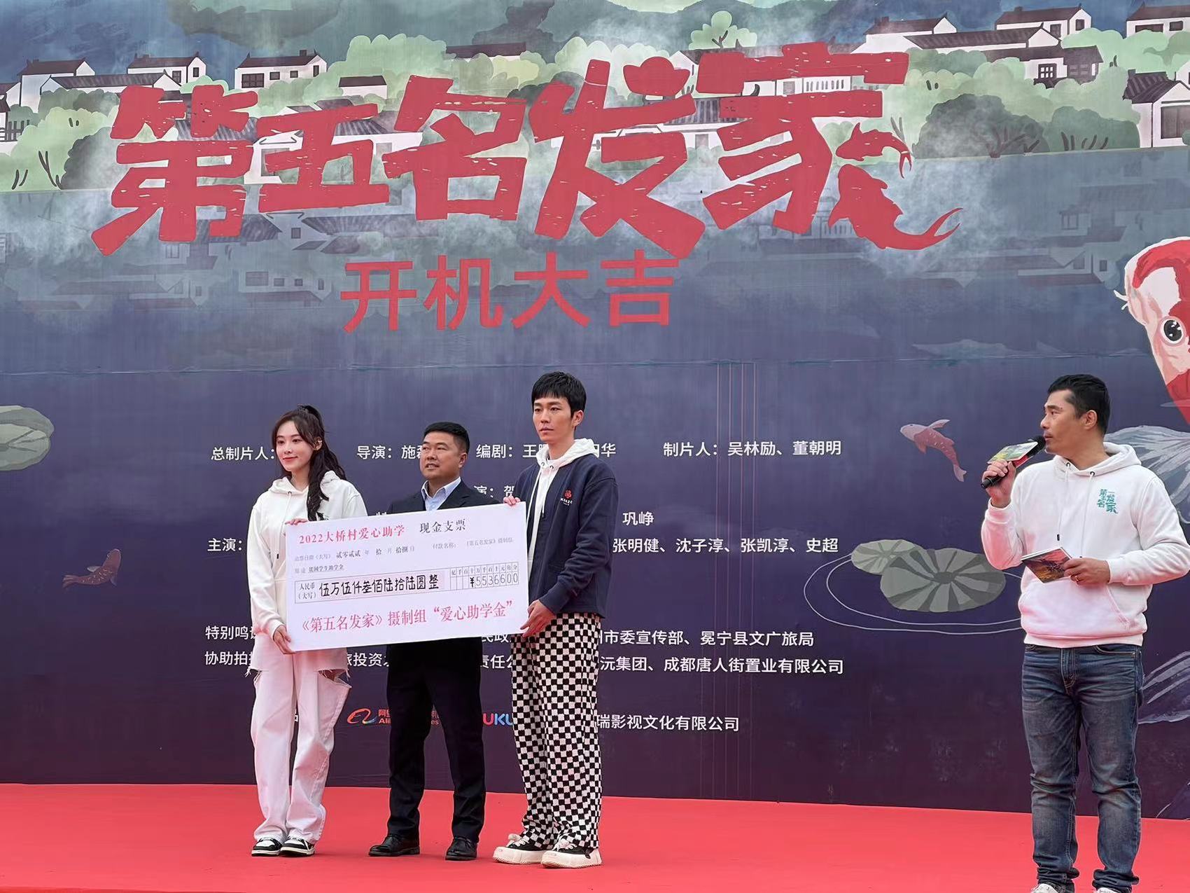开机仪式上,还举行了相关文旅项目的签约仪式,成立了“第五名发家”摄制组临时党支部,并由林永健担任临时党支部书记。同时,还进行了爱心捐款,《第五名发家》剧组为大桥镇的学校捐赠300箱牛奶和现金55000元。当天,参加开机仪式的还有四川省广电局、凉山州、冕宁县等相关部门负责人和剧组主创团队。