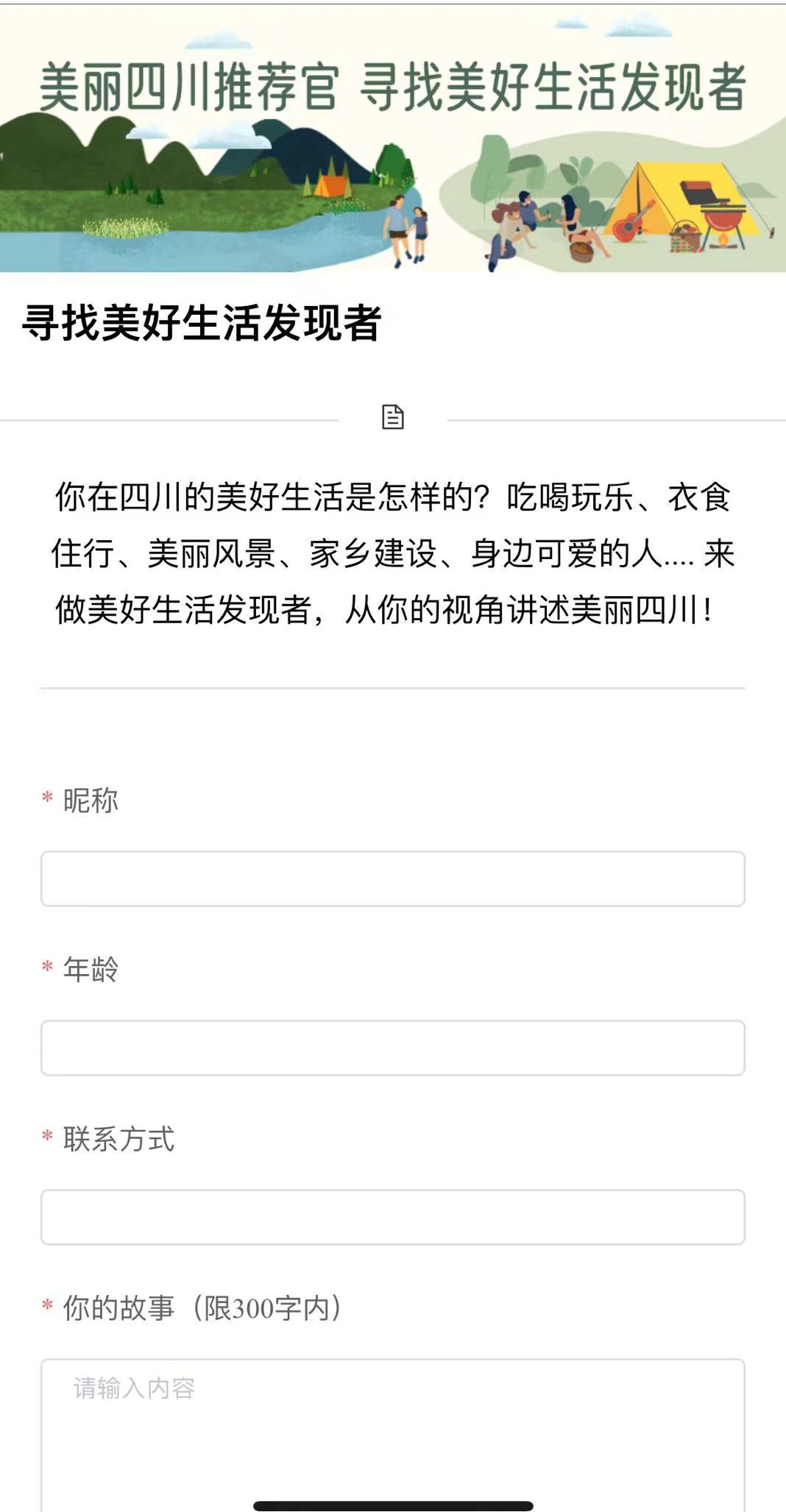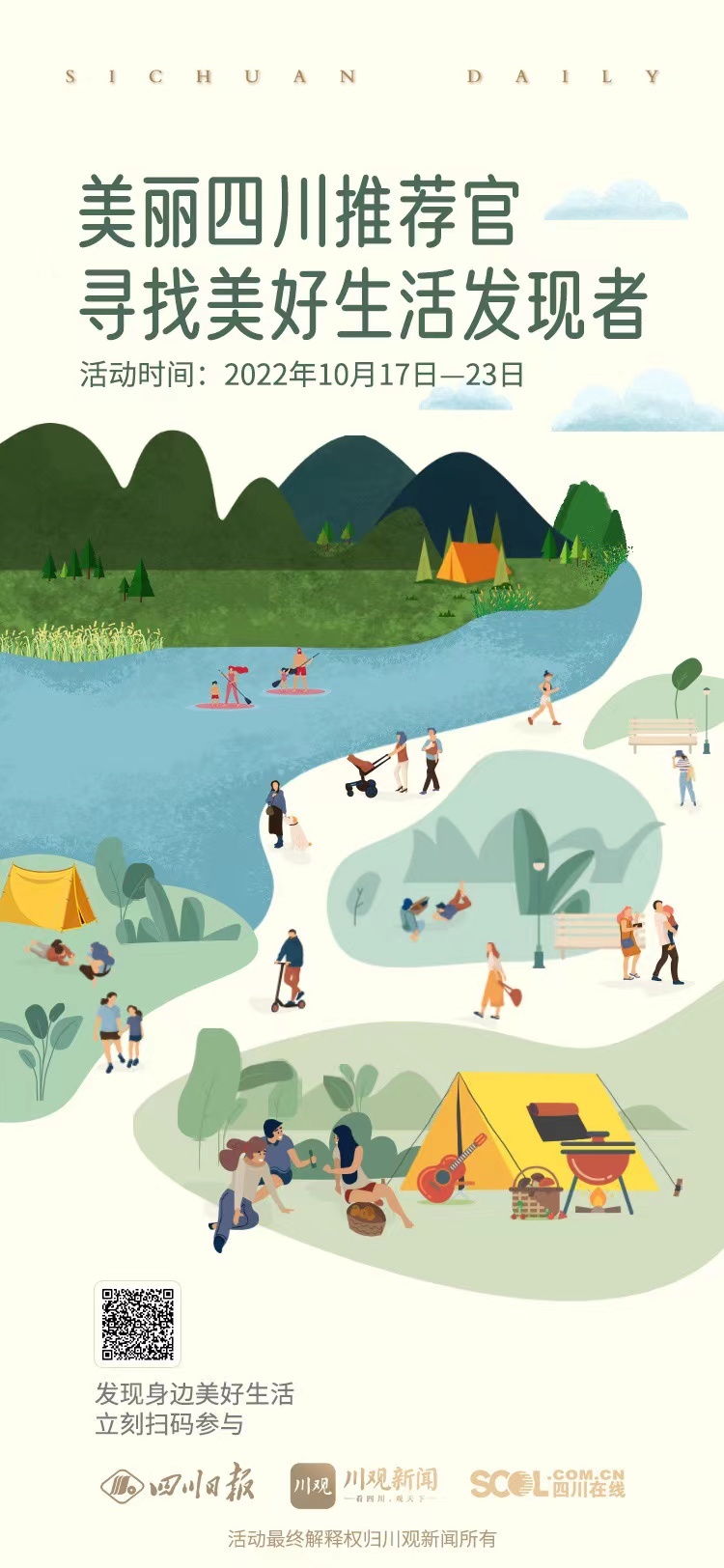 即日起,四川日报微博、微信、抖音、快手、B站,带话题#寻找美丽四川推荐官#,发布你心中的美好生活!形式不限,无论是文字、图片或是短视频,用你的镜头,去发现生态好、生活富、经济优、文化兴的大美四川;从你的视角,展望新时代新征程下的美好四川生活!