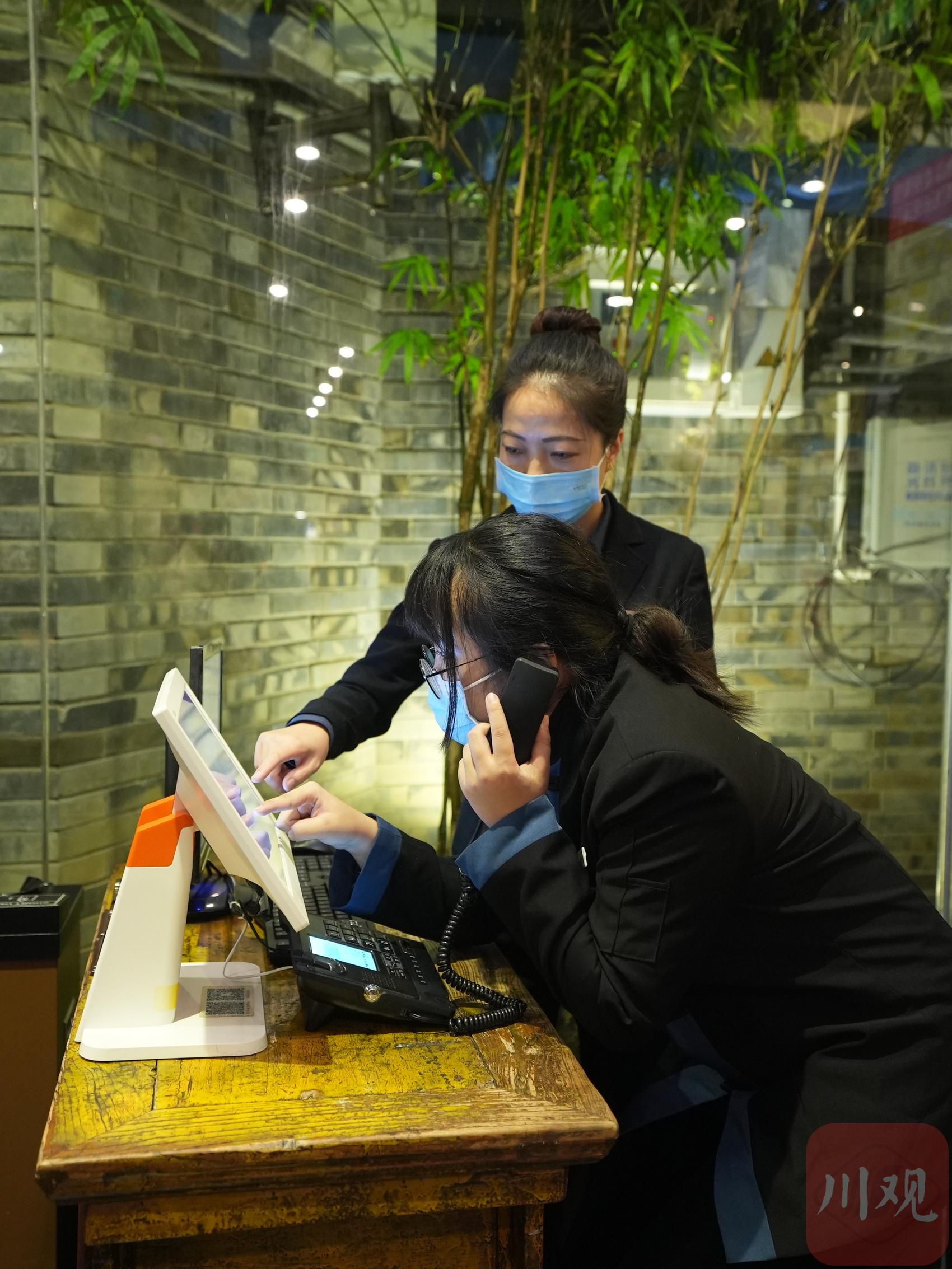 从大门口绕到大厅,又来到服务台,最后转进包厢,党军霞带领记者一一确认疫情防控扫码处、灯光、音乐、酒水等。“别忘了卫生间,那里的卫生、香薰尤其要检查到位。”党军霞交待。