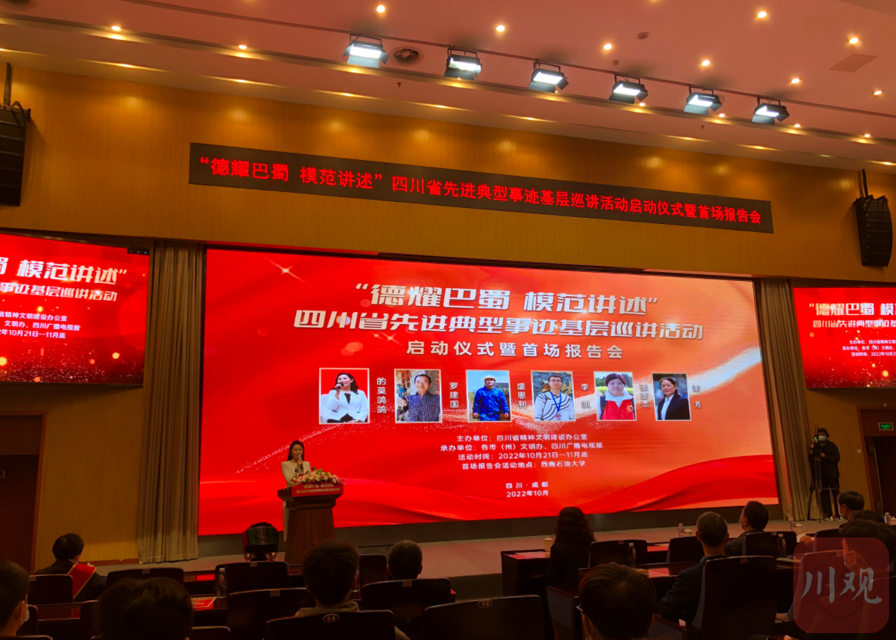 根据省文明委工作安排,省文明办将在全省组织开展“德耀巴蜀 模范讲述”四川省先进典型事迹基层巡讲活动。10月21日,活动启动仪式暨首场报告会在西南石油大学成都校区举行。
