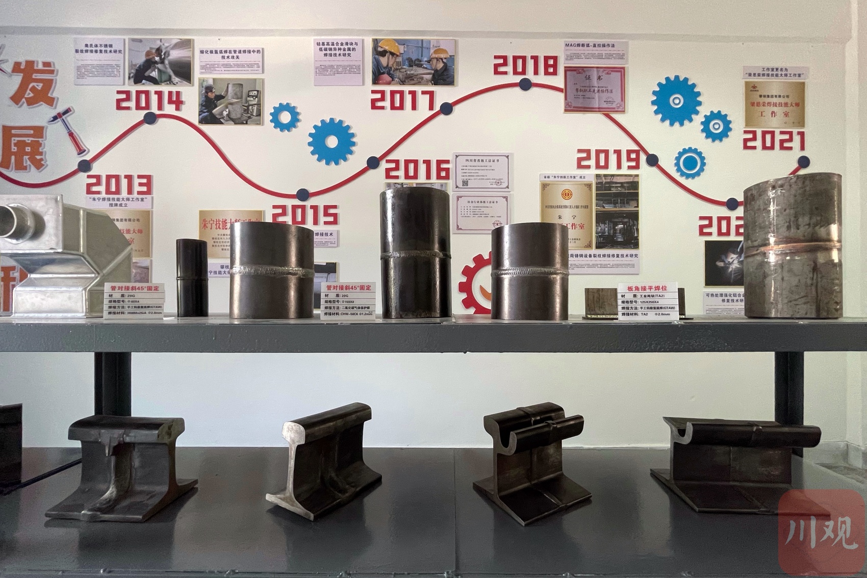 在工作室的一间展示间里,潘子祥拿起一件焊件举在眼前:“这些几乎‘隐形’的焊缝就是连接攀钢百米钢轨的秘诀,全靠它们才能让硬币在高铁上立住。”这样的高超技艺也是学员们期待掌握的。