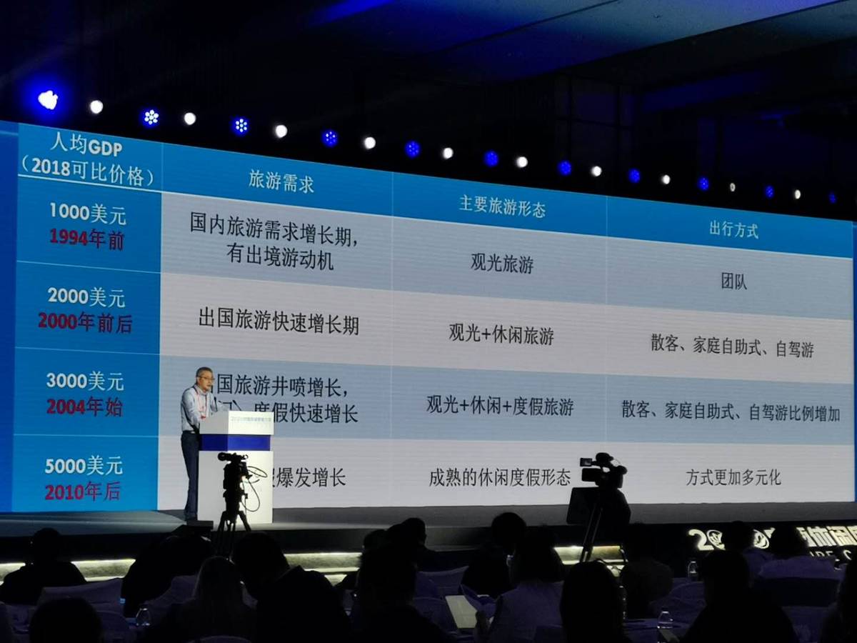 “经济发展与休闲度假旅游发展密切相关。”戴学锋说,“1994年前,中国人均GDP(2018年可比价格)1000美元,主要旅游形态是观光旅游,出行方式以团队为主。到2010年后,人均GDP5000美元时,已出现了成熟的休闲度假形态,出行方式更加多元。”