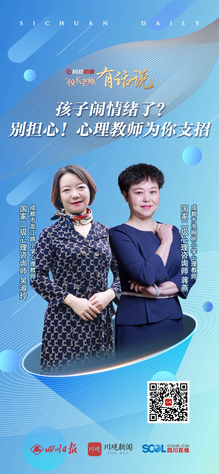 为了帮助各位孩子和家长学会正确处理孩子的情绪问题,今天,第十二期《校长、老师有话说》如约与您见面,成都市两所小学的专职心理教师在川观拍客的镜头前,分别为孩子和家长提供了一些建议。