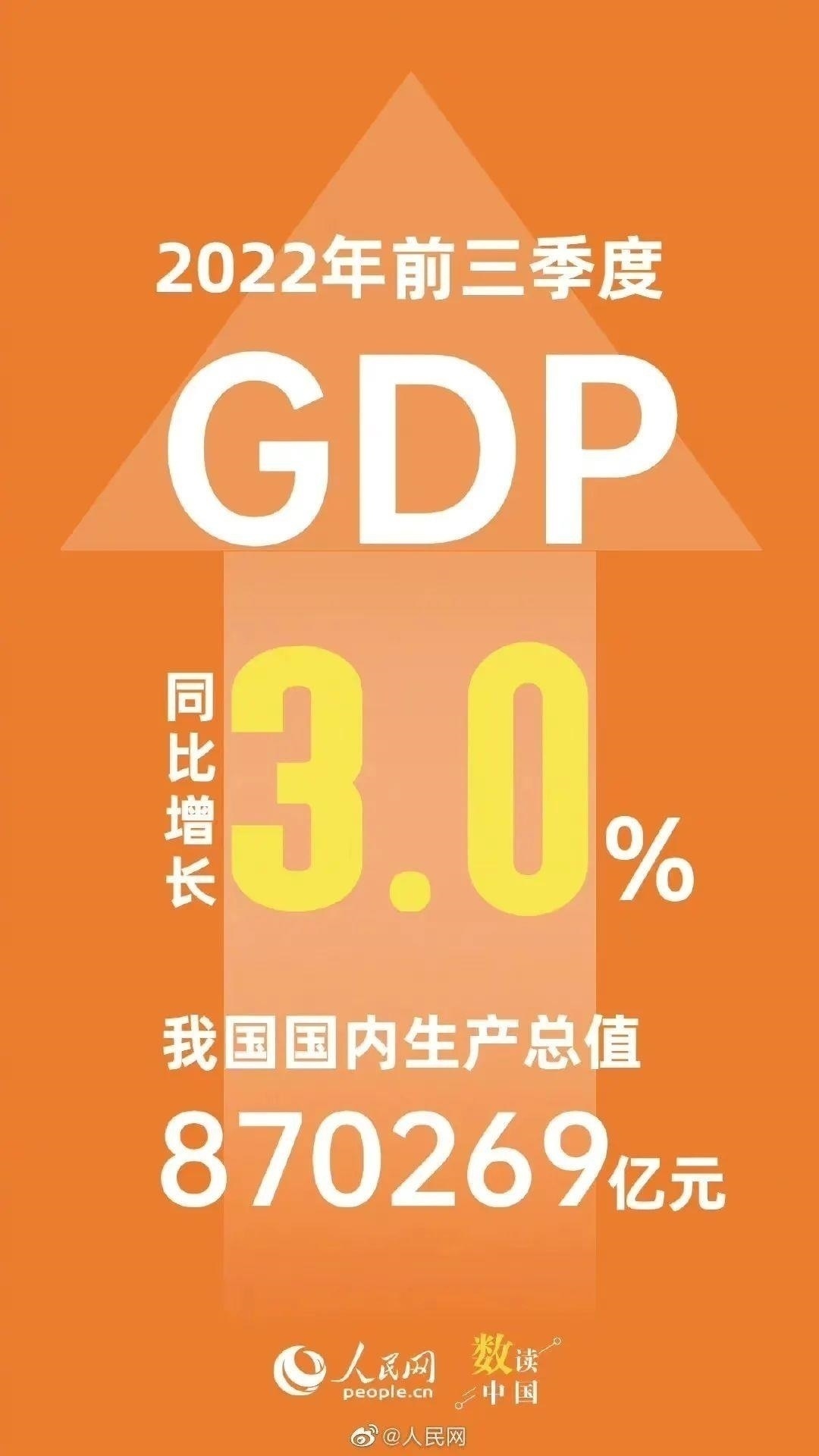 10月24日,国家统计局发布三季度经济数据,初步核算,前三季度国内生产总值为(GDP)同比增长3.0%,比上半年加快0.5个百分点。国民经济顶住压力持续恢复,三季度经济恢复向好,明显好于二季度,总体运行在合理区间。