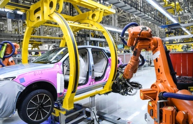 位于重庆的赛力斯汽车有限公司两江智慧工厂作业现场。