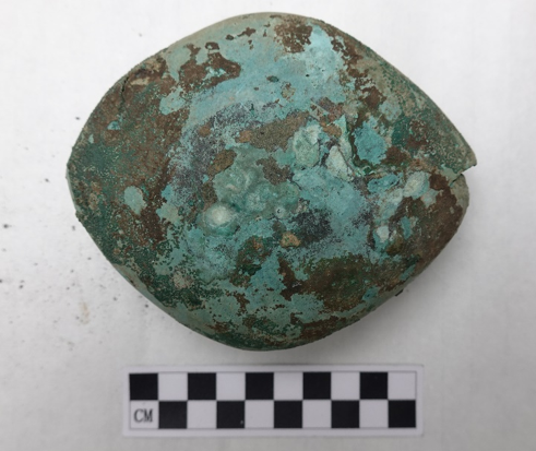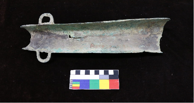 此外,科研人员还在一、二号坑的青铜眼泡、青铜尊口沿、青铜蛇、人头像等多种器型、数十件器物上发现大量矿化丝绸印痕。