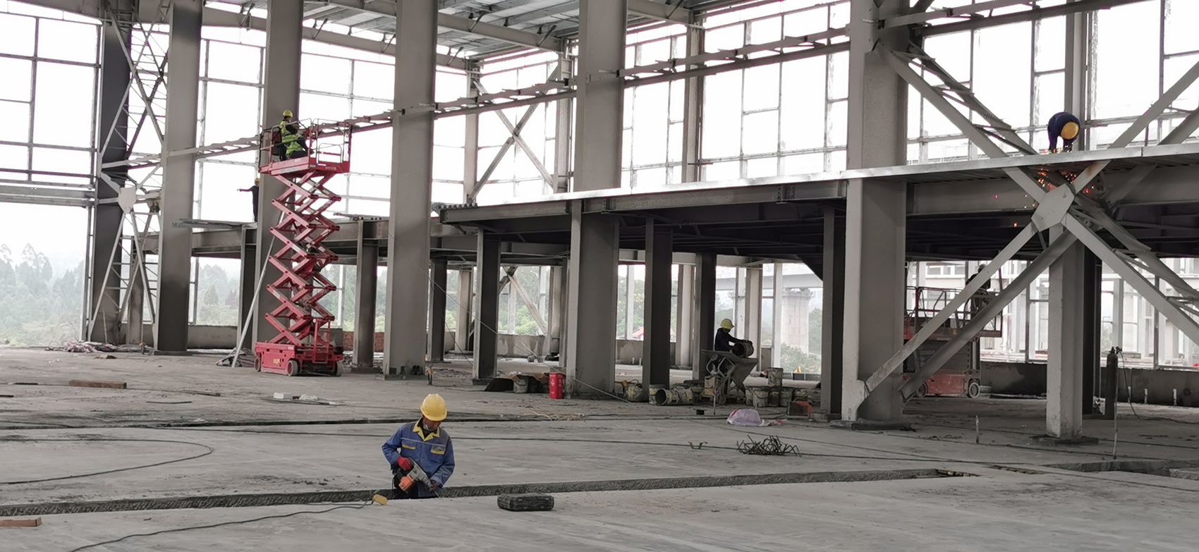 10月29日,内江高新区白马园区,乐鸿科技柔性芯片产业园项目现场,一栋栋主体建筑拔地而起,已基本完成主体框架建设。走进项目内部,近万平方米的厂房显得十分宽敞,纵横交错的钢制横梁、桁架下,工人正在操纵者紧张地开展内部装饰装修工作。
