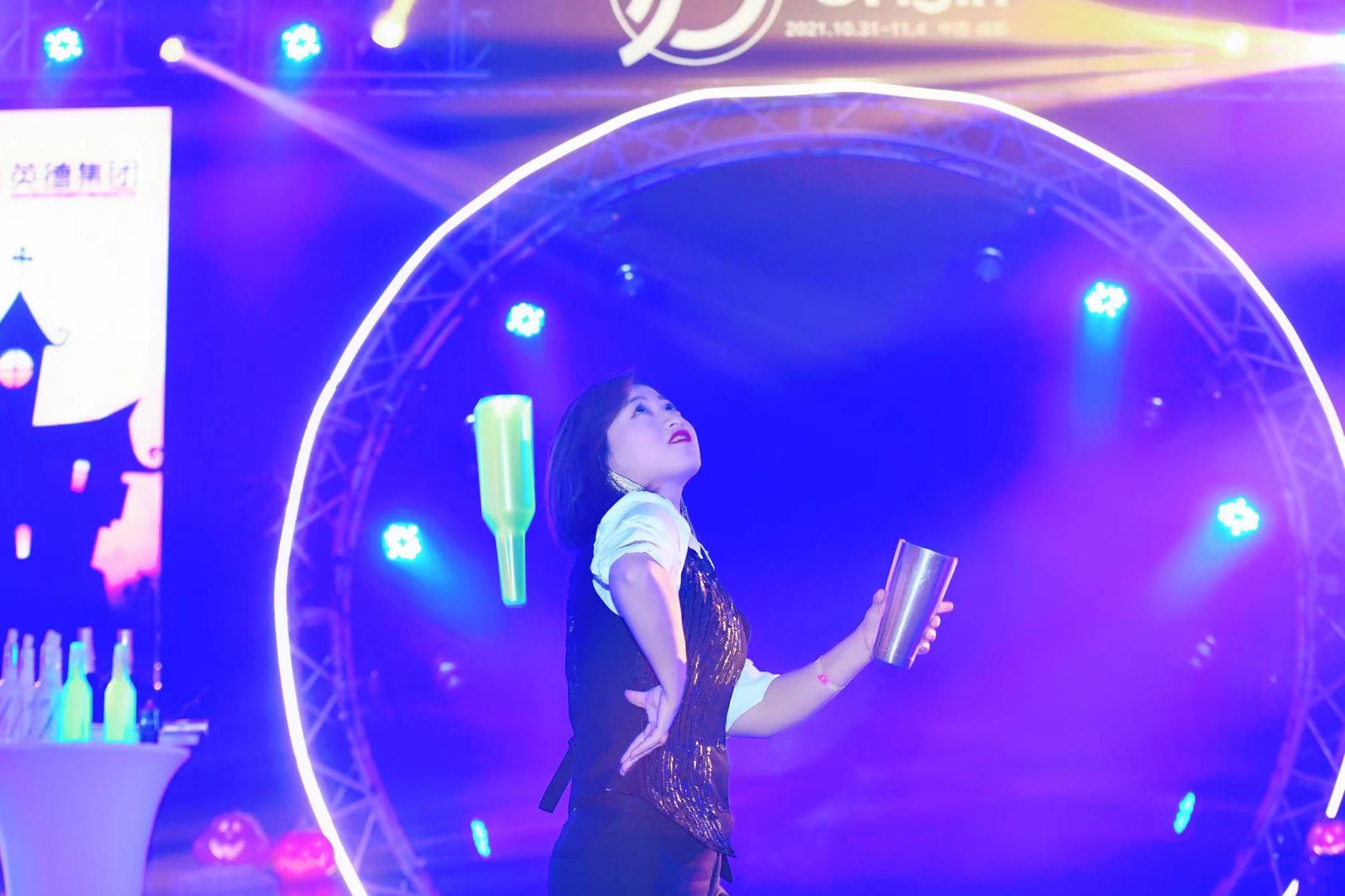 金水梅在表演花式调酒