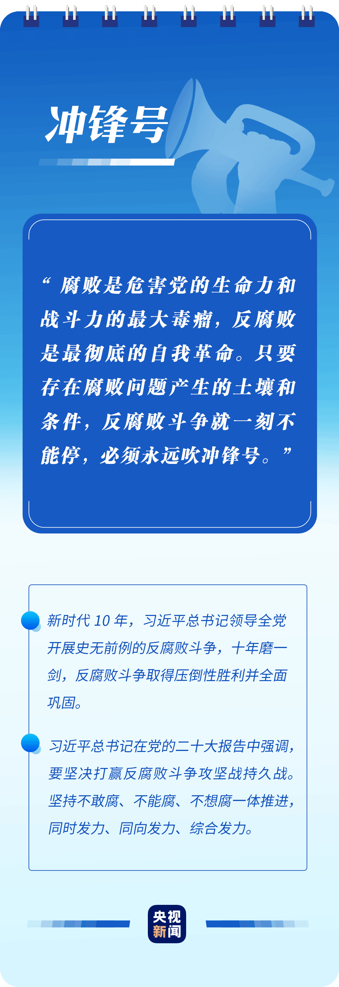 “只有植根本国、本民族历史文化沃土,马克思主义真理之树才能根深叶茂”“使党始终成为风雨来袭时全体人民最可靠的主心骨”“只要存在腐败问题产生的土壤和条件,反腐败斗争就一刻不能停,必须永远吹冲锋号”……