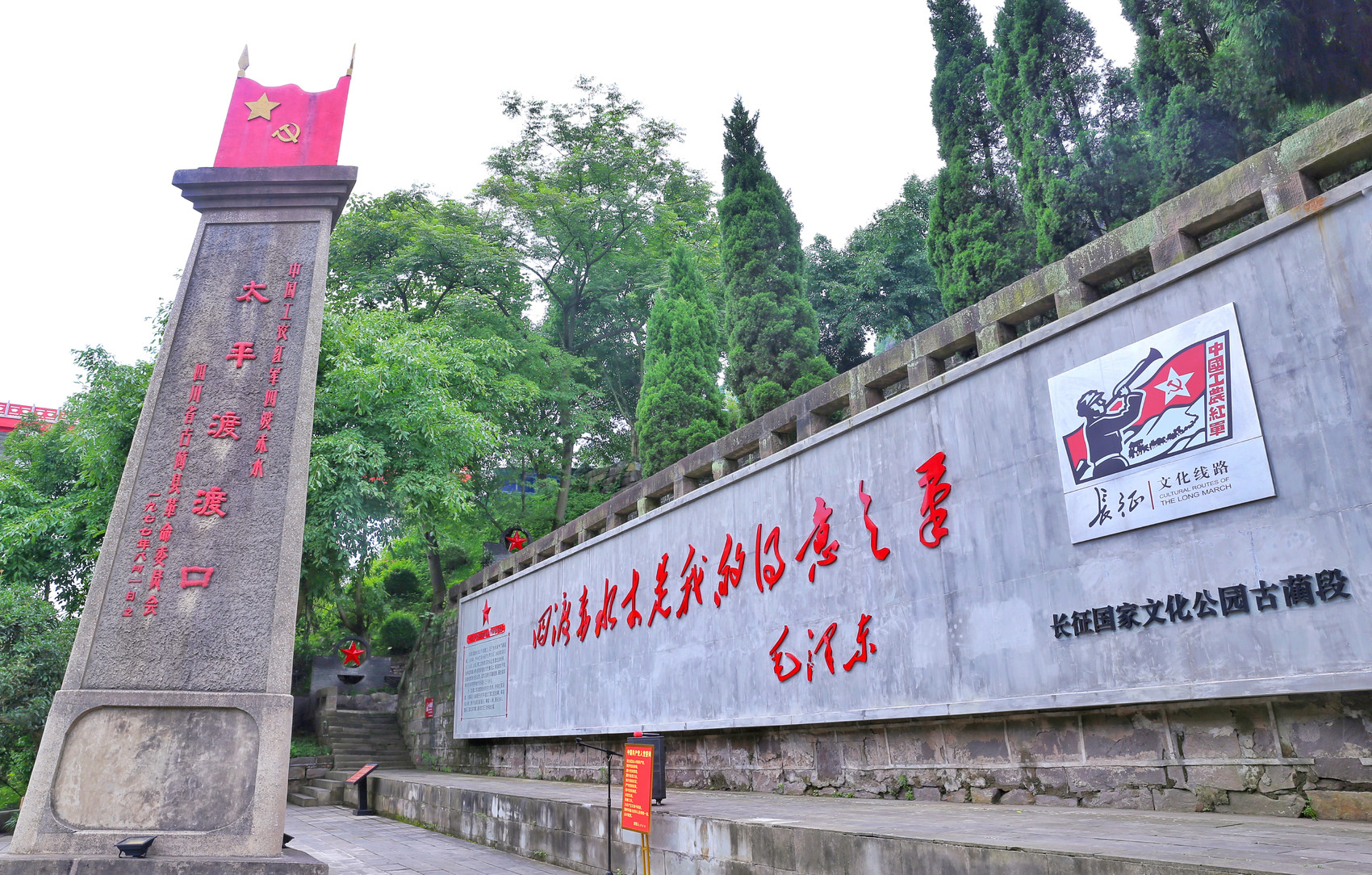 从泸州市古蔺县县城驱车约40分钟,到达坐落于赤水河畔的太平镇。在高速公路出口,有一面长35米、高5.4米、厚1.29米的“中央红军入川第一县”文化墙,寓意中央红军于1935年1月29日入川,在古蔺转战54天。