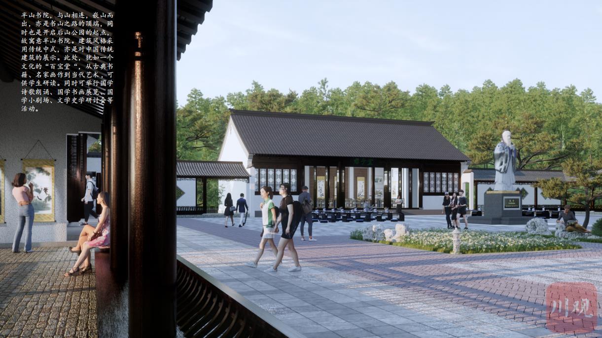 具体来看,在设计方案中,校园主轴通过由南向北逐步抬高的分台处理方式,既是缓解场地高差,同时节节攀升的入校空间序列,体现学校培育学子们勇于攀登的拼搏精神,形成“书山有路”的校园文化轴线。从校园大门进入礼仪广场,结合东侧的校史馆,开启校园历史文化的展示之旅。文化长廊则利用中部台地,有效衔接教学区与体育运动及食堂区域,同时利用看台下方的长廊空间,形成校史馆的延续,以名人走廊及科学长廊作为校园文化展示在中轴线上的延续。继续拾级而上,以书院的原型形成的“君子堂”便是学校的“半山书院”,这里也是攀登书山公园探索的起点。