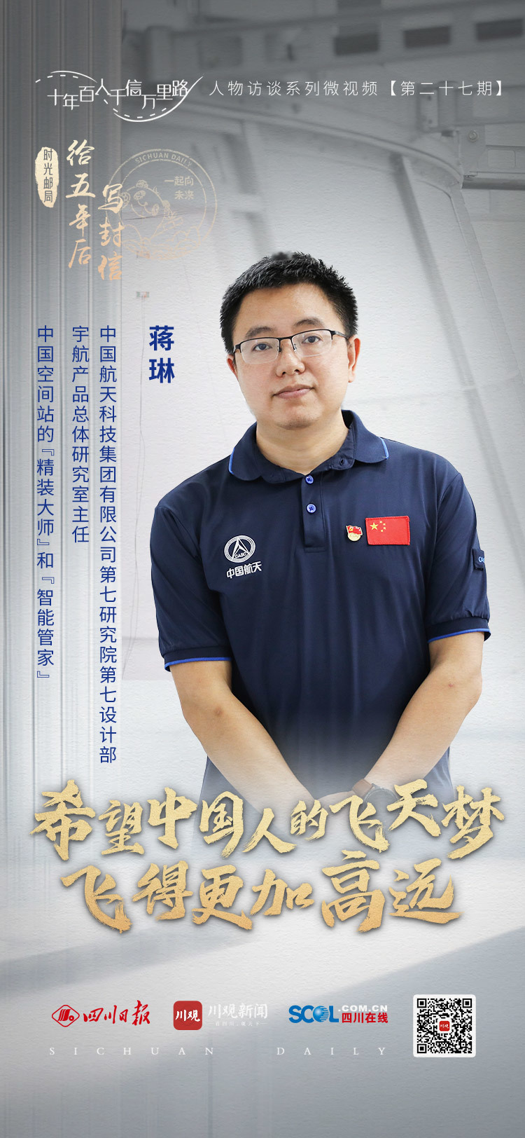 12年来,蒋琳和同事们从零开始,开疆拓土,在载人航天工程领域站稳脚跟,让四川的科技力量在我国载人航天工程中占有一席之地。“这是一个很好的时代,我们为能亲身参与人类走向深空的伟大工程而骄傲。”