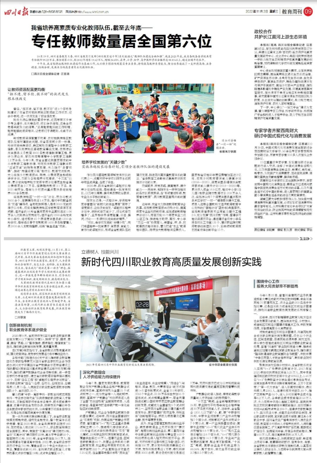 2020年9月,省政府印发《四川省职业教育改革实施方案》(以下简称《方案》),按照“扩容、提质、贯通、融合”思路,以“整体推进、提质培优、增值赋能”为主线,推动职业教育创新发展、高质量发展。