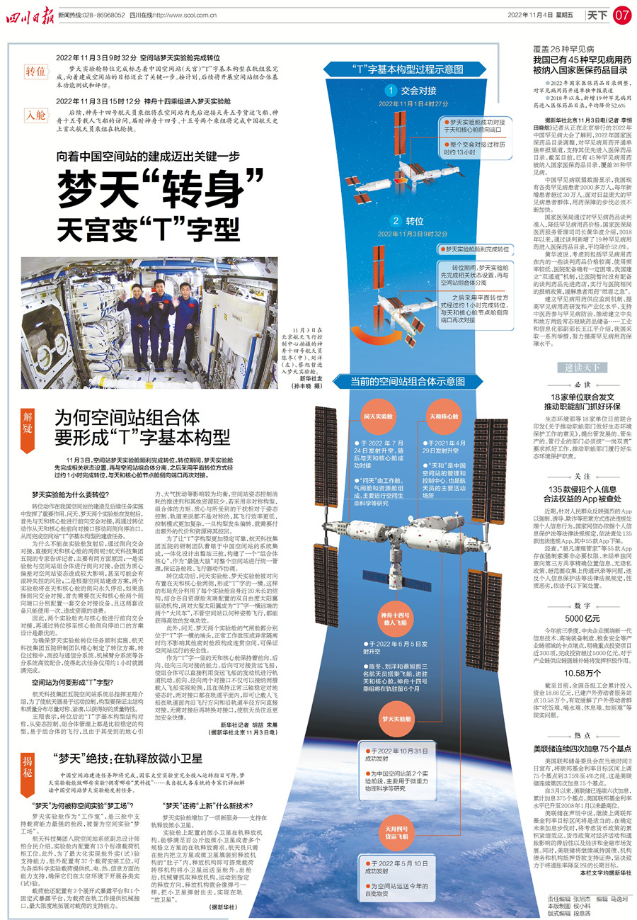 空间站梦天实验舱顺利完成转位,专家详解为何空间站组合体要形成“T”字构型。