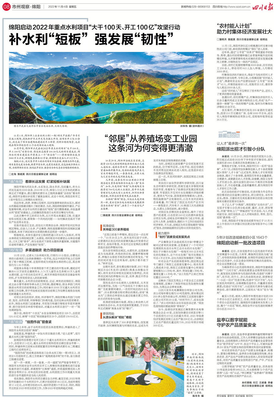 绵阳市启动2022年重点水利项目“大干100天、开工100亿”攻坚行动。待这批总投资100.18亿元的项目建成后,绵阳水利项目建设水平将再上一个“新台阶”。