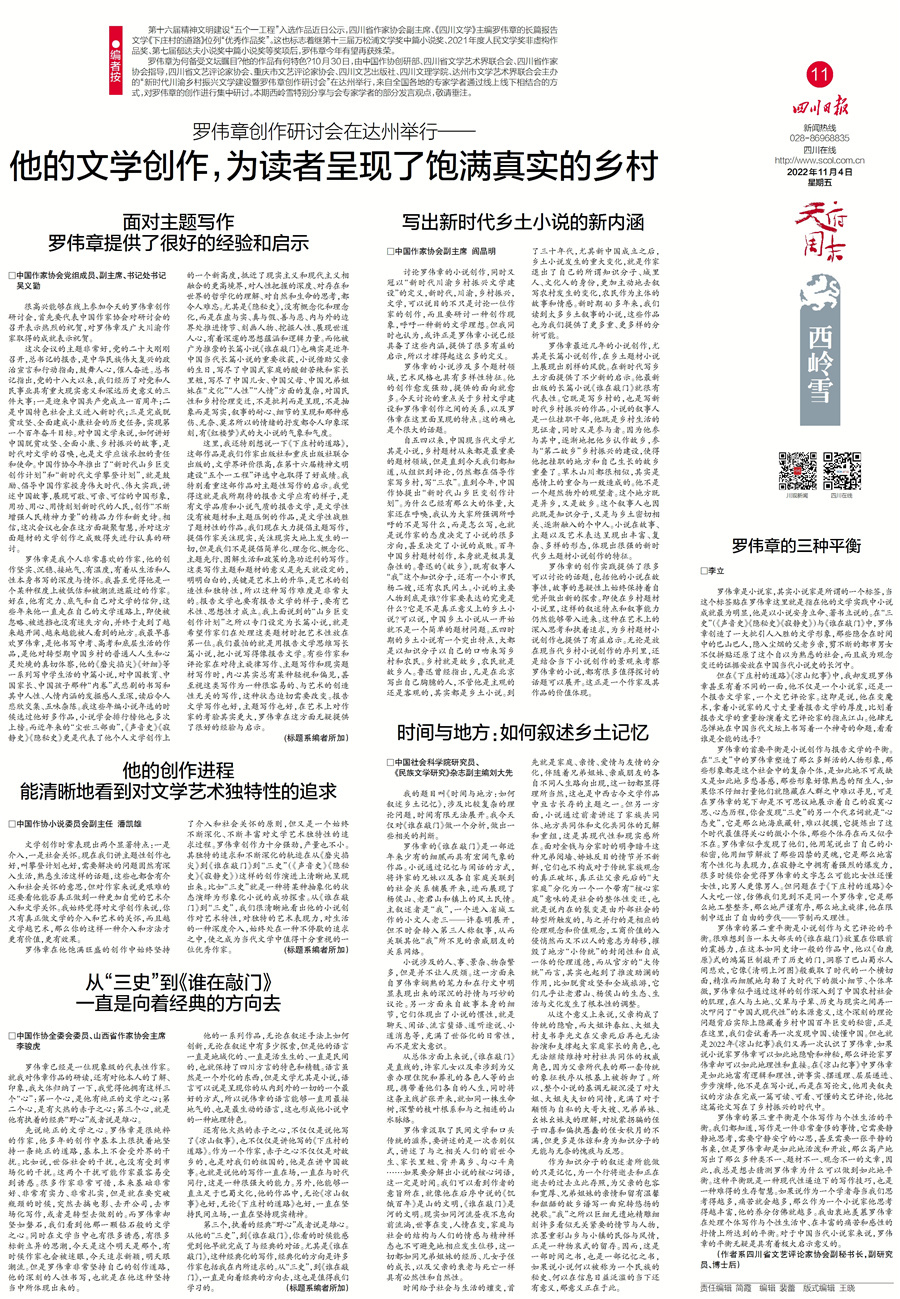 听专家学者线上线下热议罗伟章的创作。