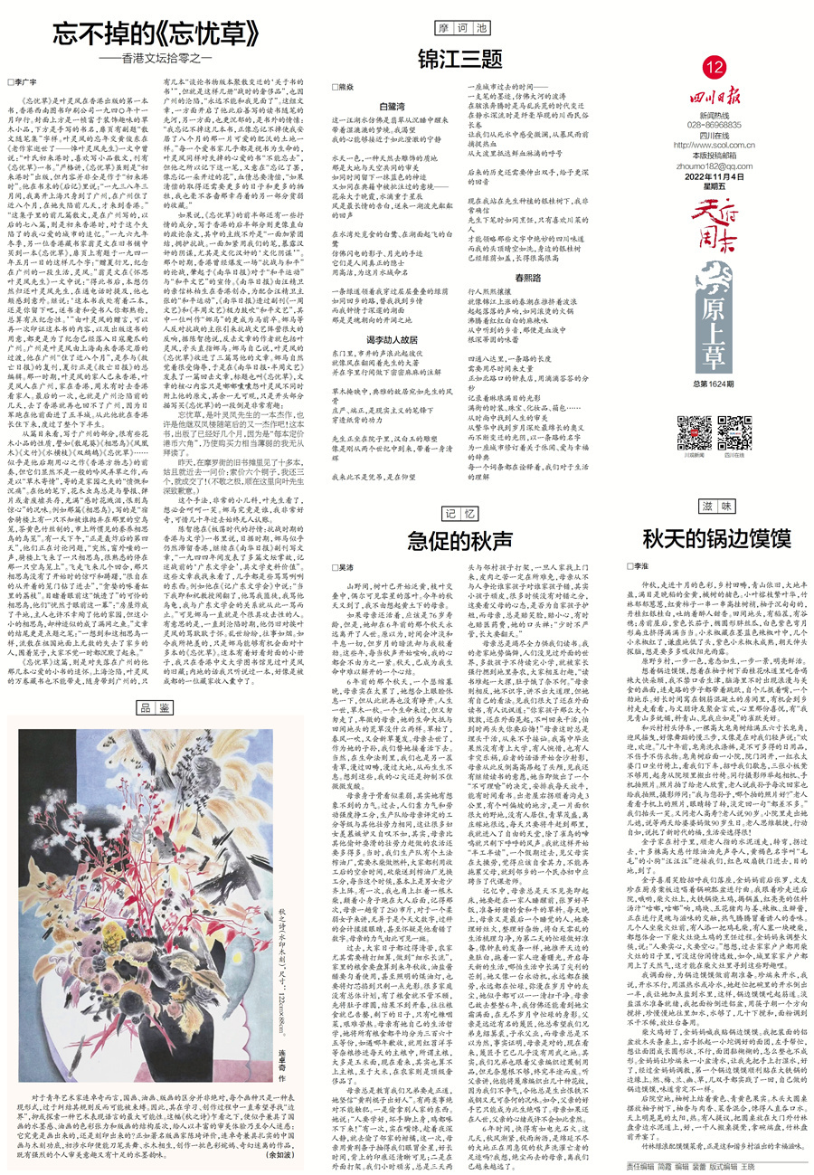 忘不掉的《忘忧草》, 锦江三题……请看各位作者的妙笔深耕。