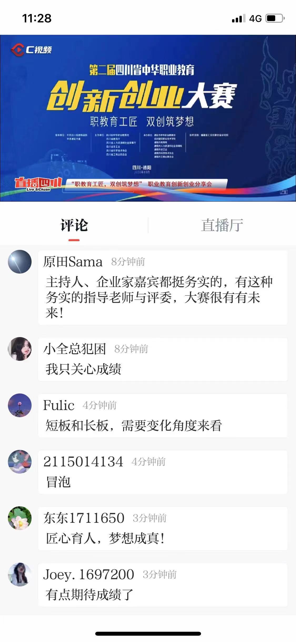 11月4日上午,第二届四川省中华职业教育创新创业大赛举办职业教育创新创业分享会,同步在川观新闻客户端进行全程视频直播。与会嘉宾围绕创新成果转化、行业需求等方向,分享创新创业理念、故事和经验。