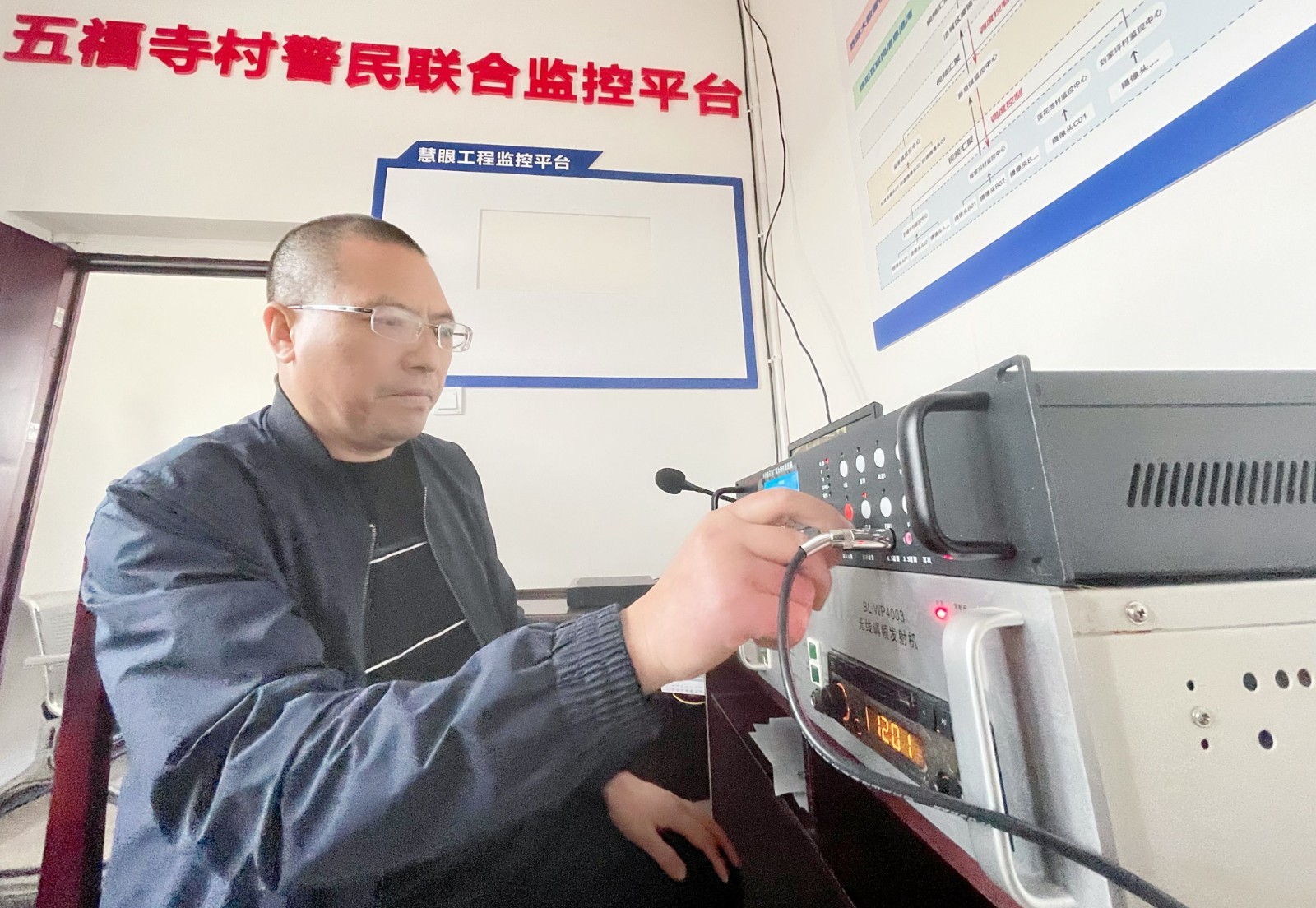 五福寺村党委书记李宏正在准备广播 郭超英 摄