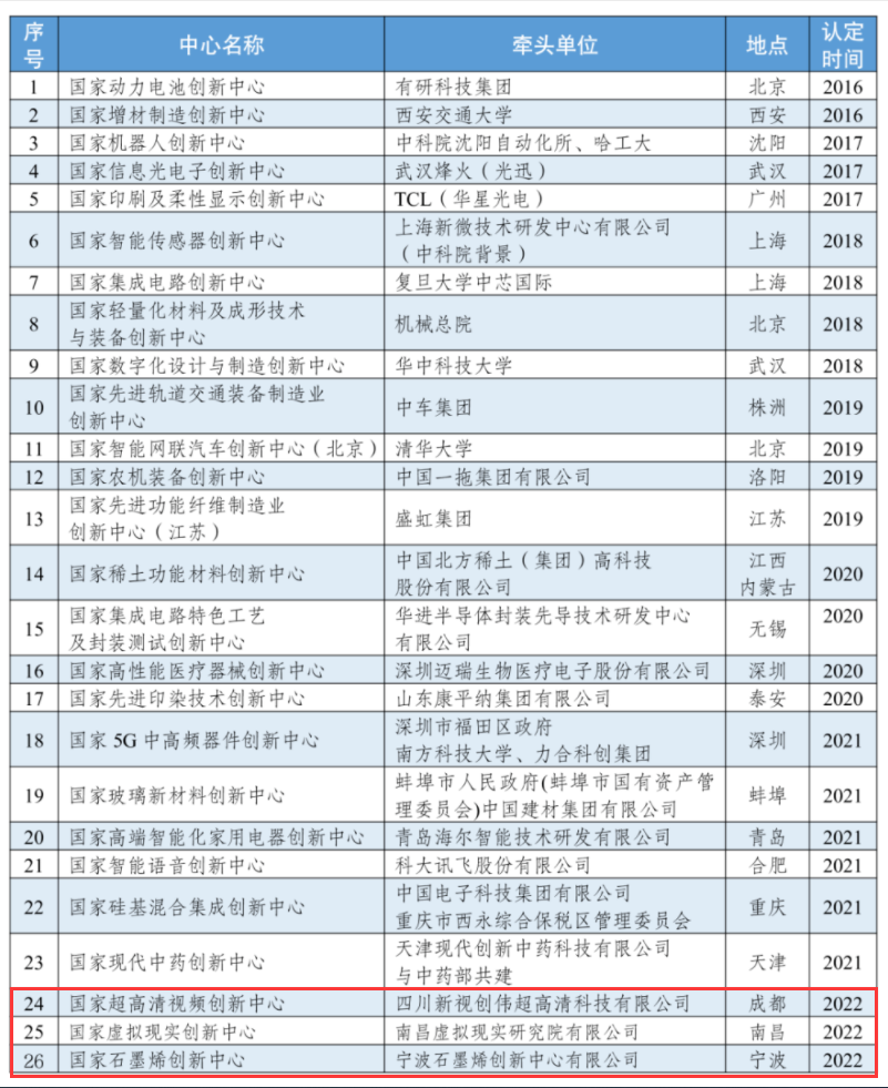 11月7日,记者从四川省经济和信息化厅获悉,近日工业和信息化部批复组建国家石墨烯创新中心、国家虚拟现实创新中心、国家超高清视频创新中心等3家国家制造业创新中心。其中,国家超高清视频创新中心位于成都。