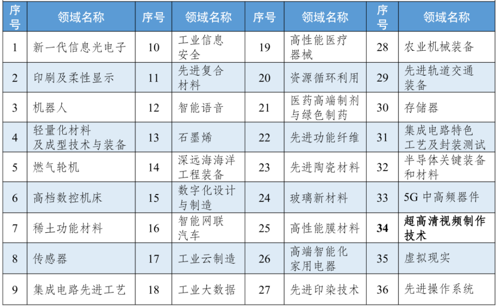 国家级制造业创新中心的36个重点建设领域。工业和信息化部官网截图