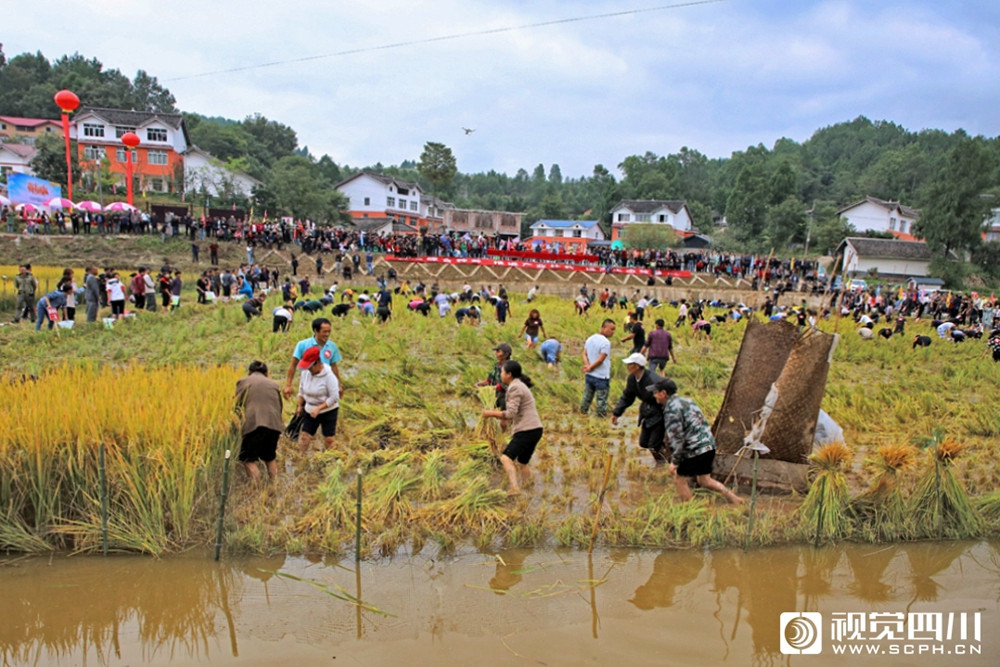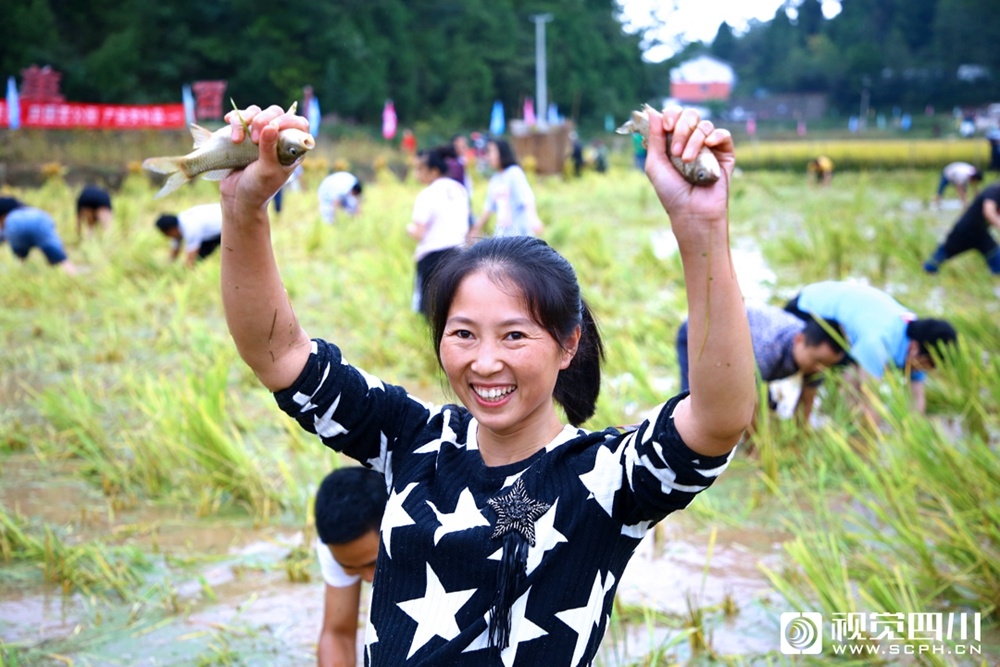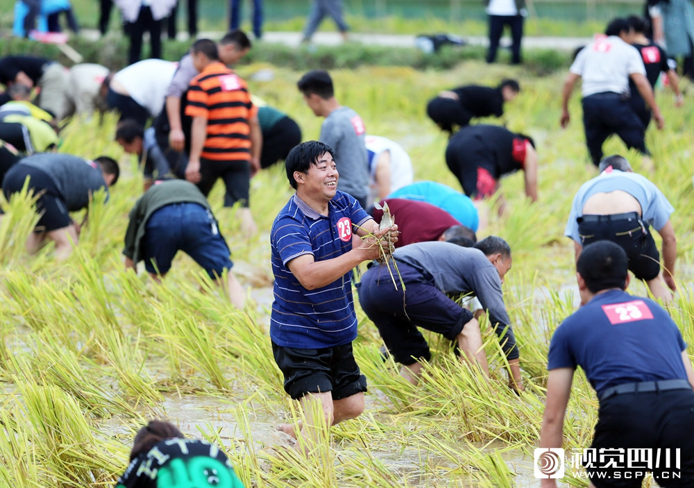 9月24日,四川省广元市昭化区庆丰收活动在该区磨滩镇举行,吸引了磨滩及周边村镇村民分沓而至,组队参加“捉鱼”比赛。
