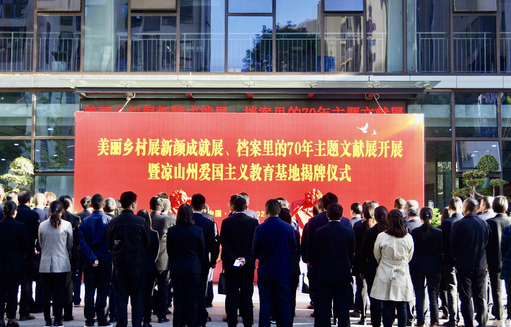 一件件档案、一段段历史;一幅幅生态美、产业兴、道路通的美丽幸福乡村画卷徐徐展开……随着凉山州委副书记沙文的宣布,11月11日,凉山州“美丽乡村展新颜”成就展、“档案里的70年”主题档案文献展在凉山州档案馆开展。同时,凉山州爱国主义教育基地进行了揭牌仪式。