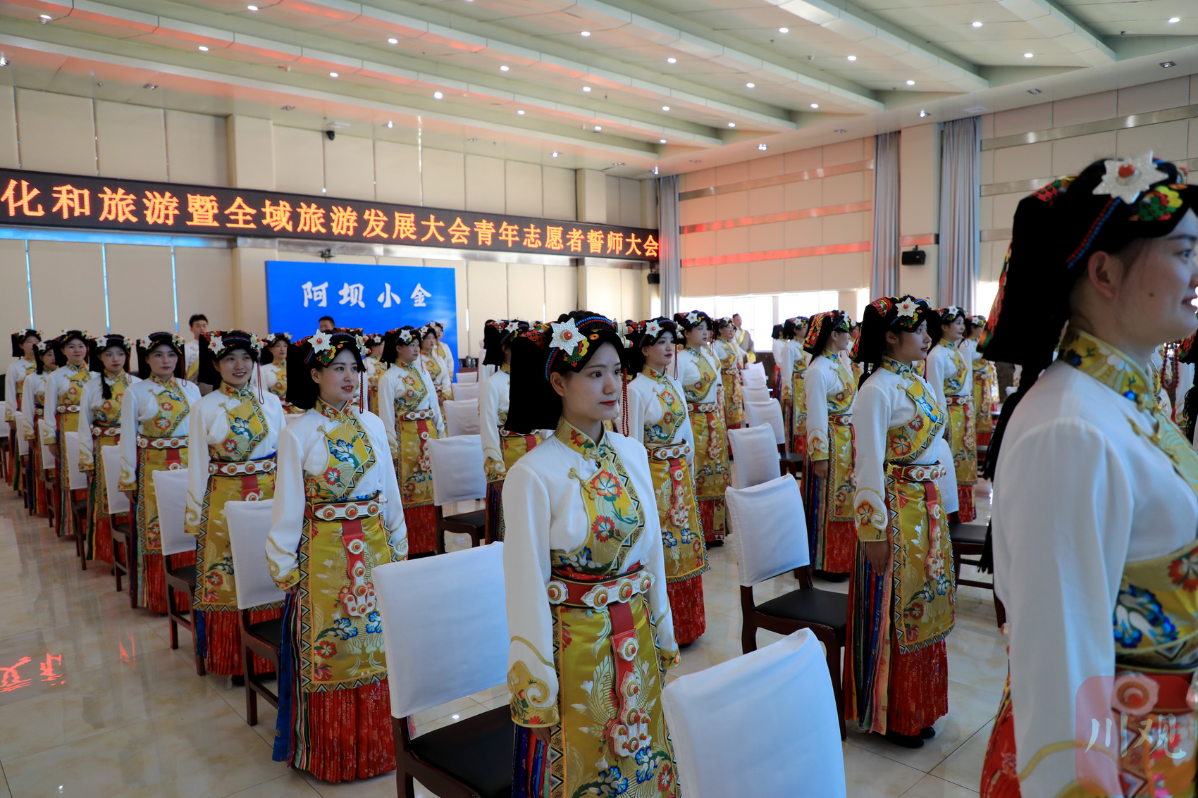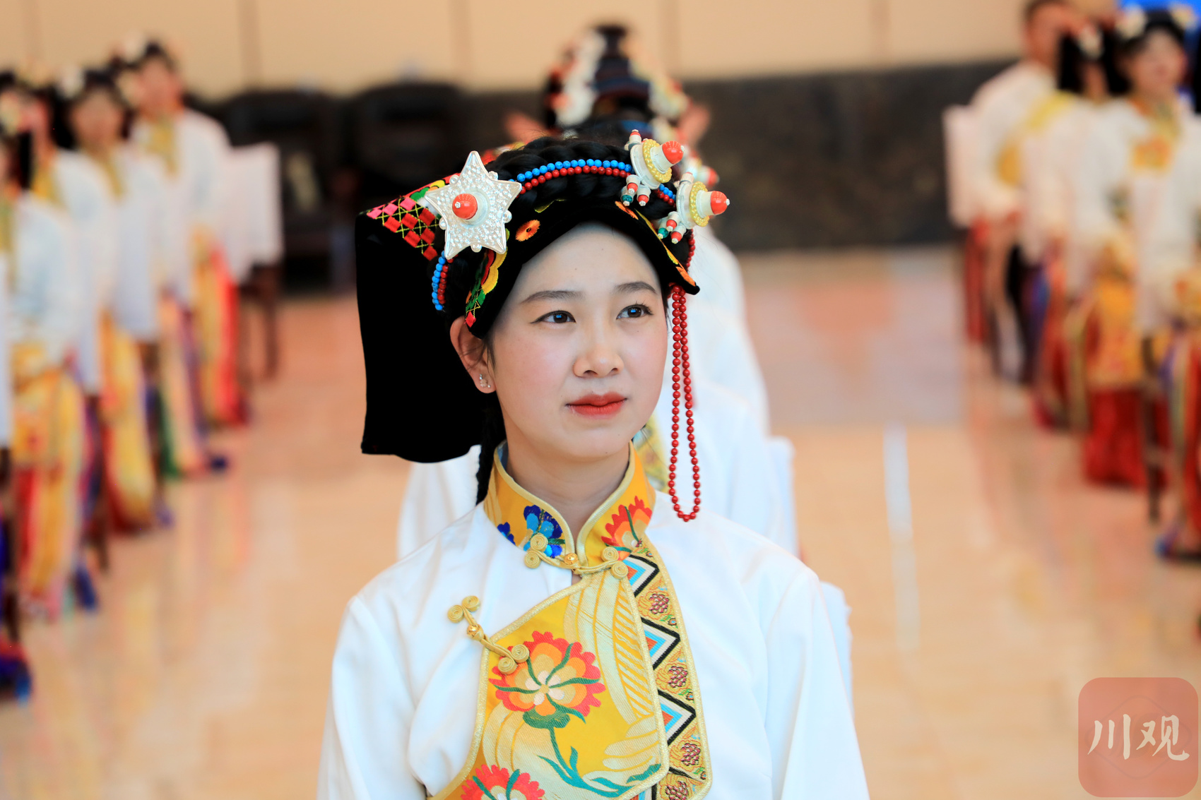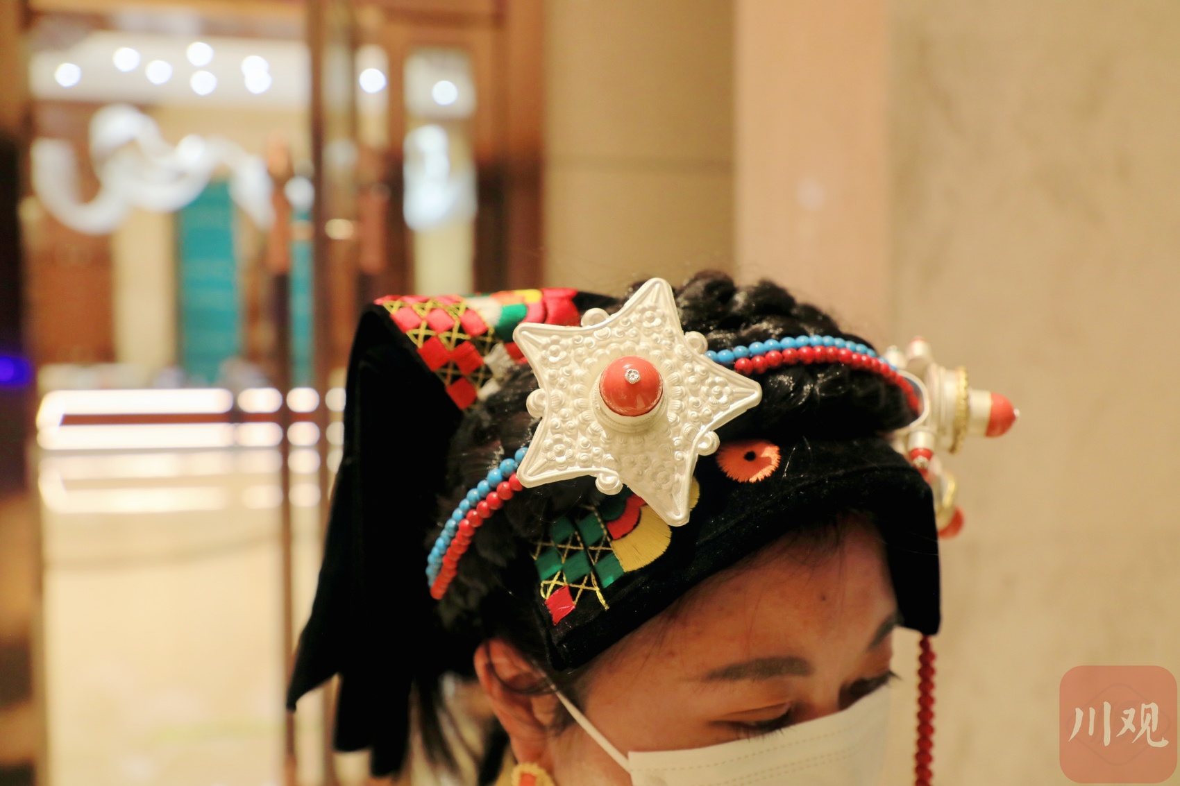 11月12日,在阿坝州第四届文化和旅游暨全域旅游发展大会即将开幕之际,在活动举办地——小金县四姑娘山镇,众多身着传统嘉绒服饰的女志愿者们已经就位,在她们的头饰中,一个点缀着珊瑚石的银色五角星引起了记者的注意。