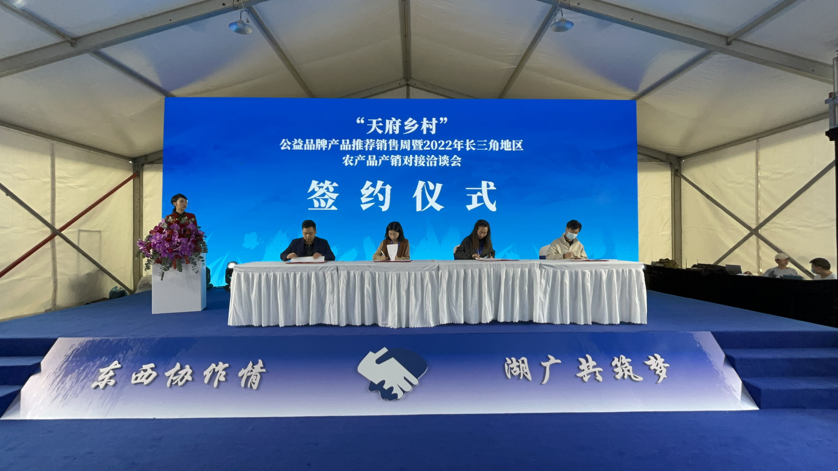 11月13日,川观新闻记者从四川省乡村振兴局获悉,日前,在浙江省湖州市举行的“天府乡村”公益品牌产品推荐销售周暨2022年长三角地区农产品产销对接洽谈会(湖州分会场)上,粮油、水果、酒类等千余件广安特色农产品面向湖州客商及市民进行销售推介。其中,还有两个月才进入销售期的邻水脐橙,已被湖州当地超市抢先订购。