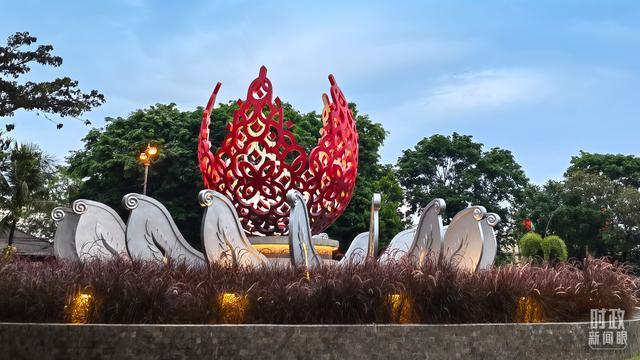 △坐落于巴厘岛登巴萨市的G20纪念碑。(总台央视记者韩锐拍摄)